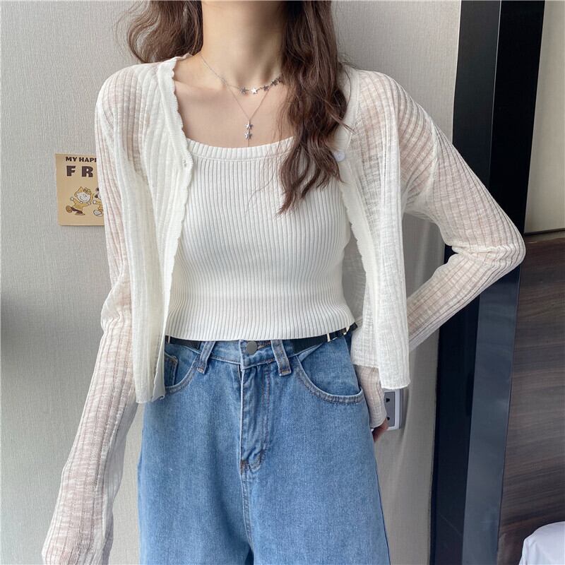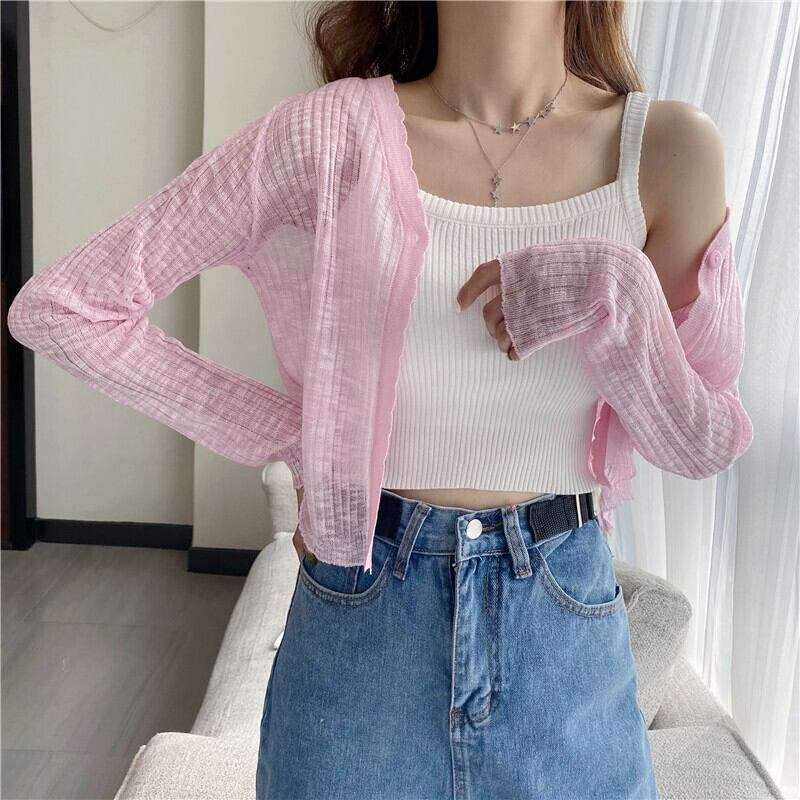 セーター カーディガンVネックレディースサマースリムブラウス ロング 夏物 YY-ファッション66557745250