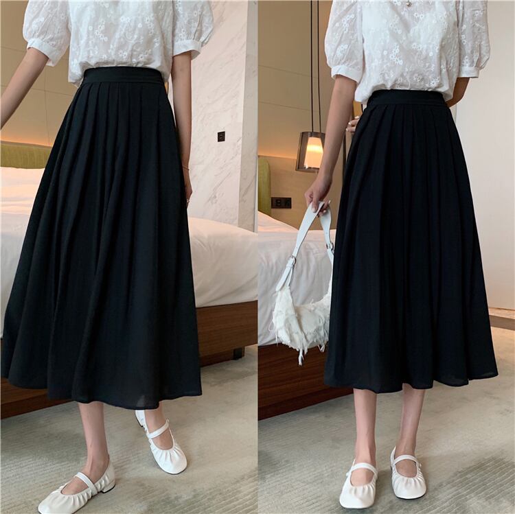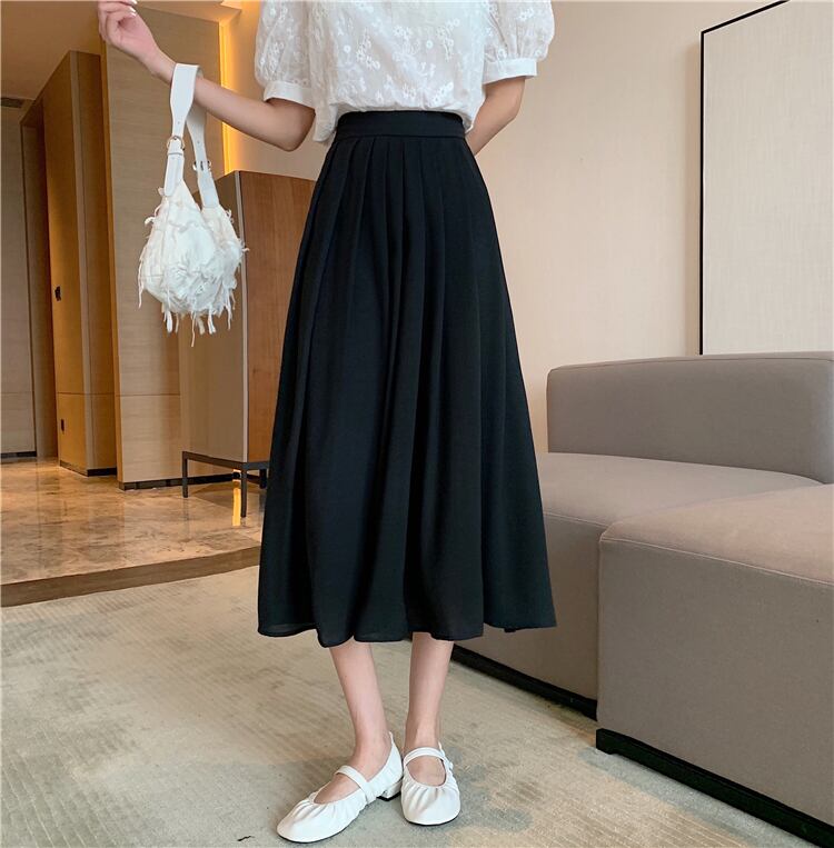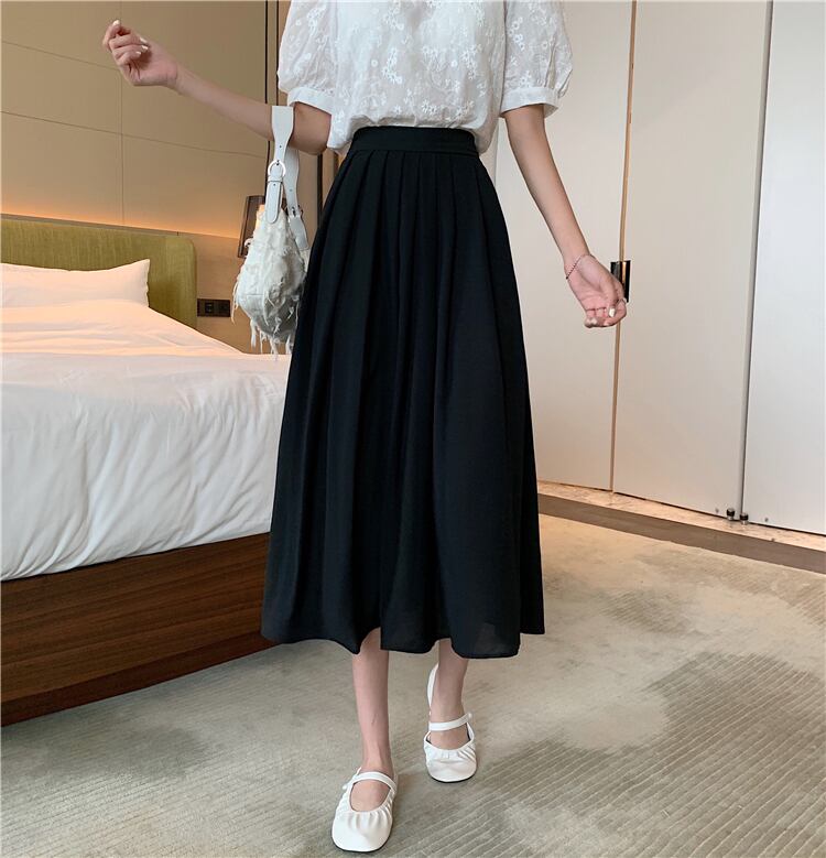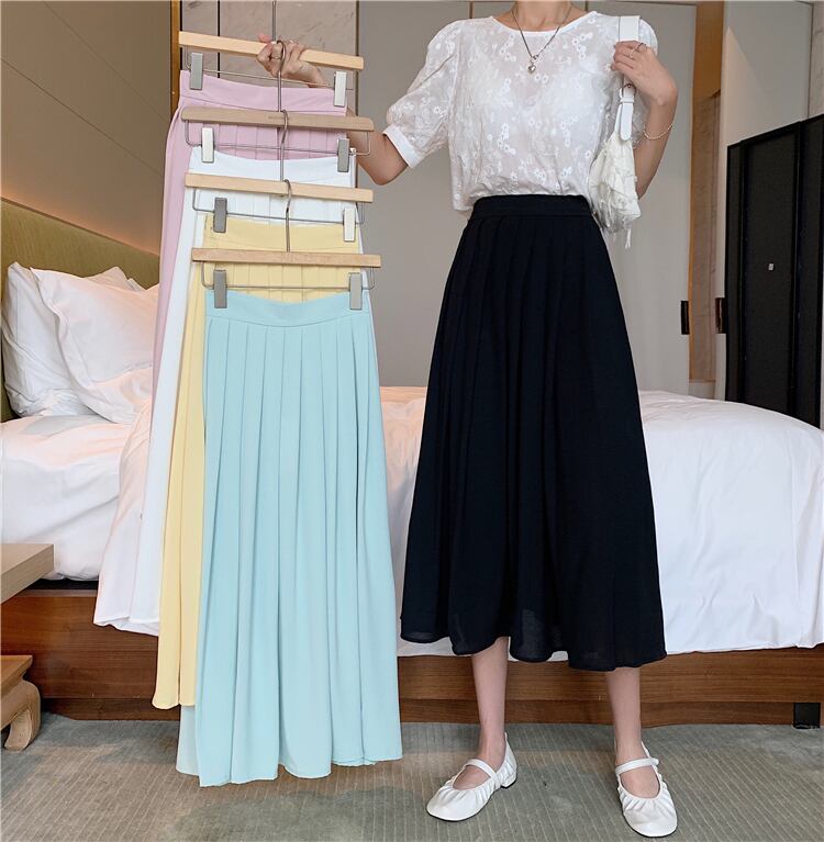 プリーツスカート サマーハイウェストウェスト薄手Aライン 夏物 YY-ファッション27276572918