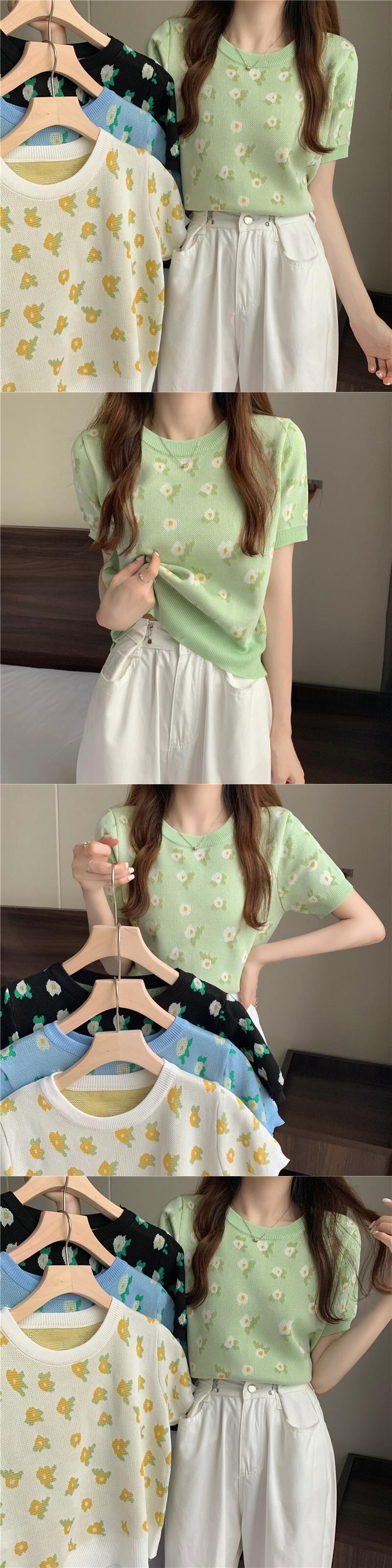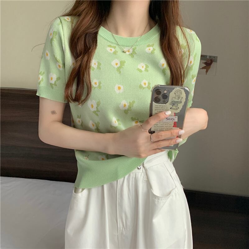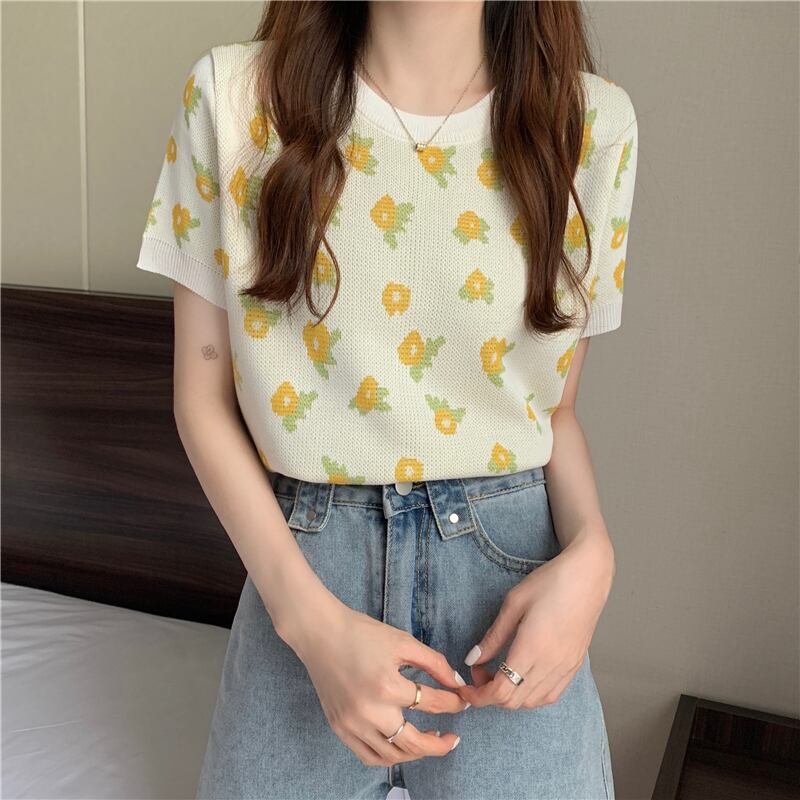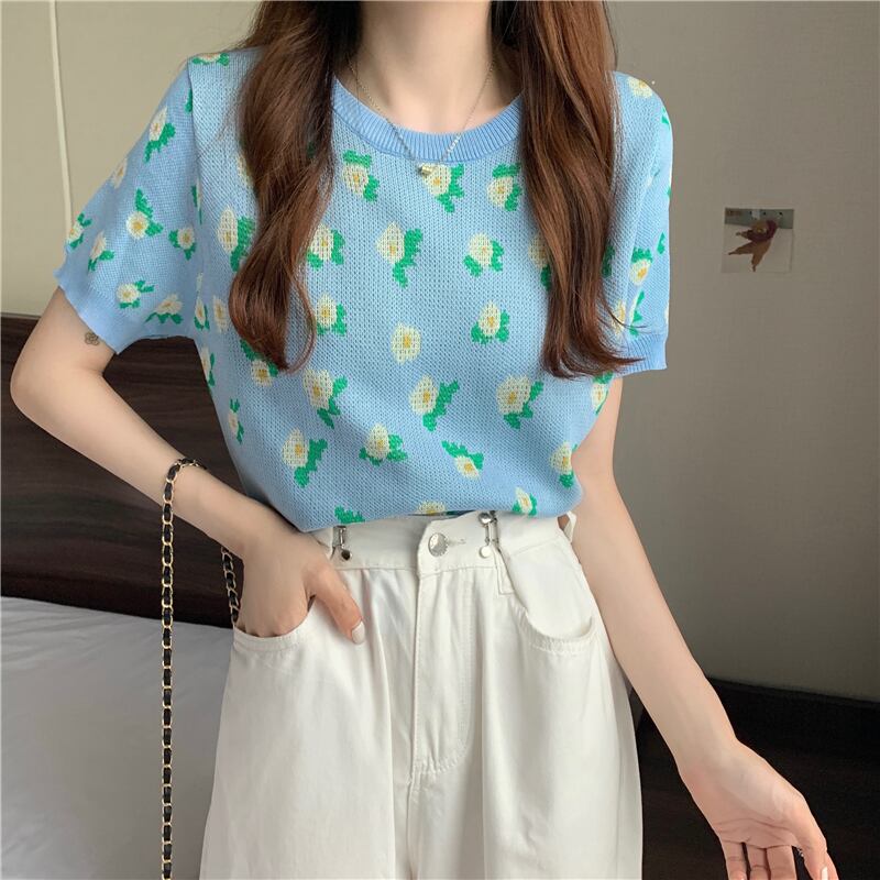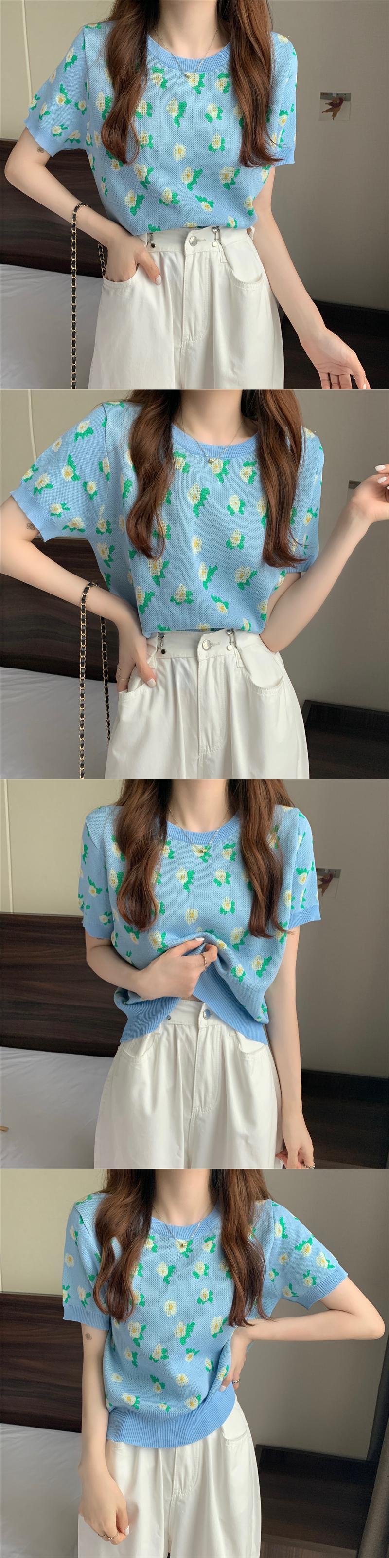 Tシャツ ショートサマープリント柄ニットラウンドネックトップス 夏物 Oネック YY-ファッション62538065792