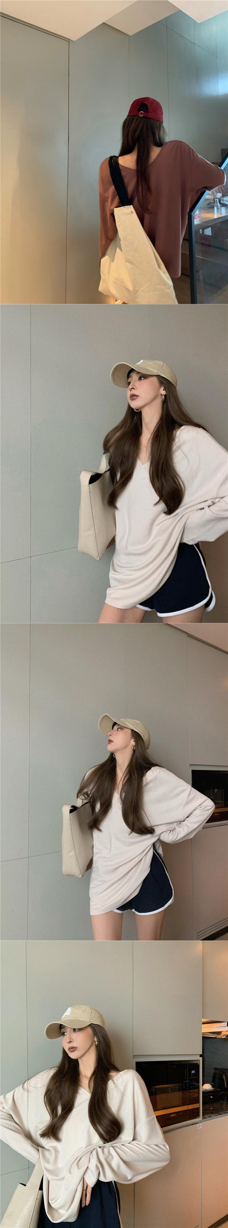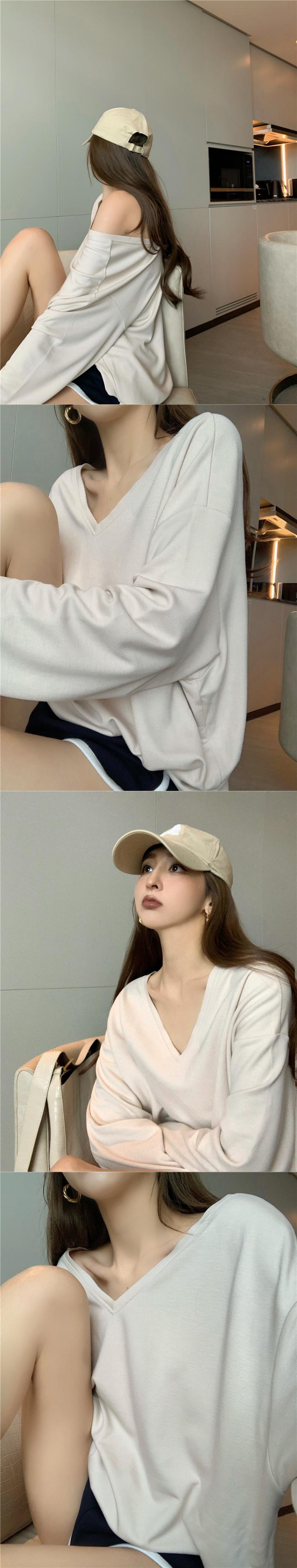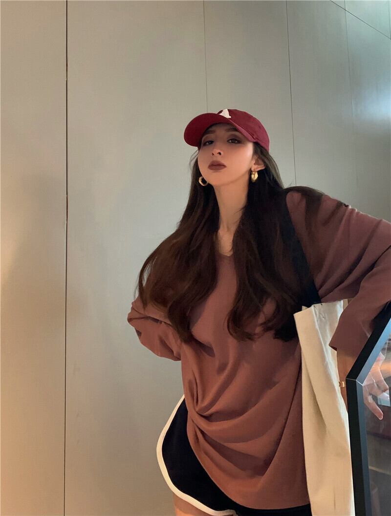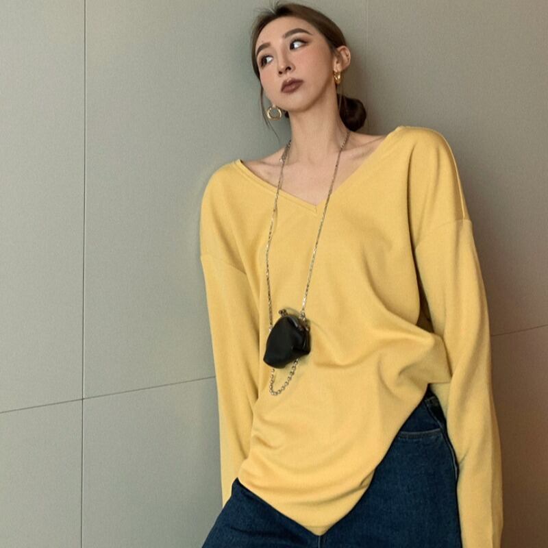 シャツ 薄手VネックルーズサマーカジュアルTシャツ トップス レディース ロング 夏物 YY-ファッション92345200816
