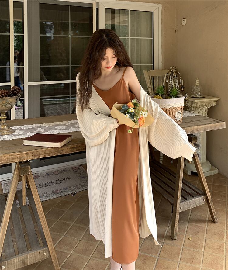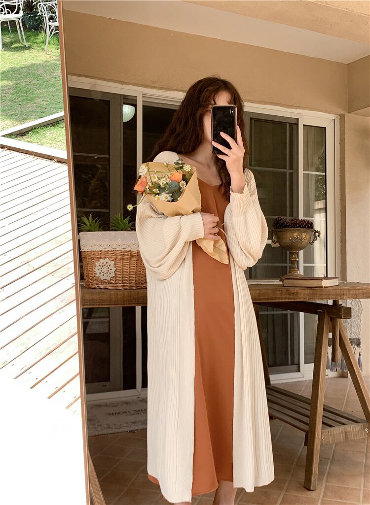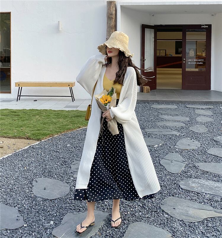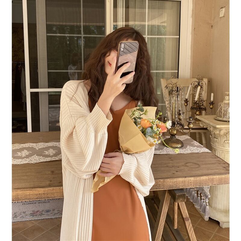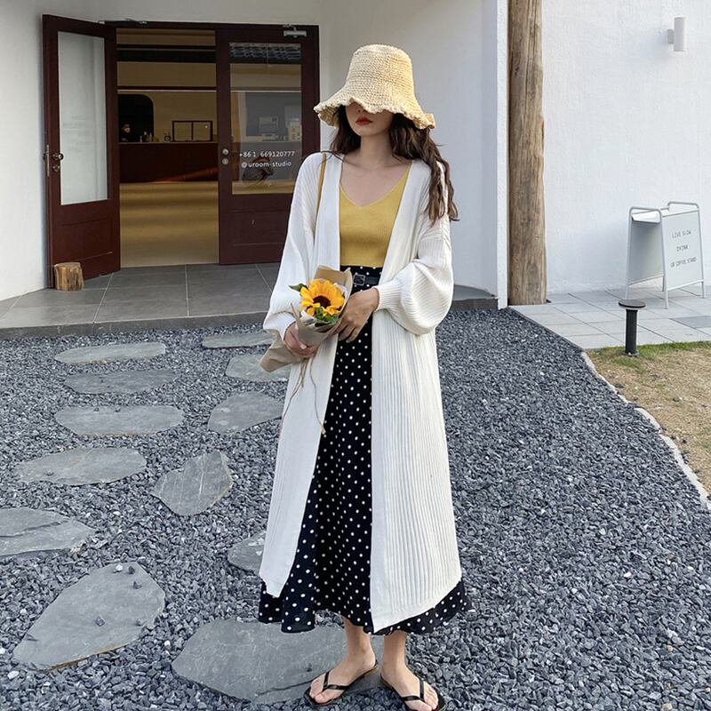 スプリングロング薄手ニットカーディガンルーズトップス コート セーター 春物 YY-ファッション11599674525