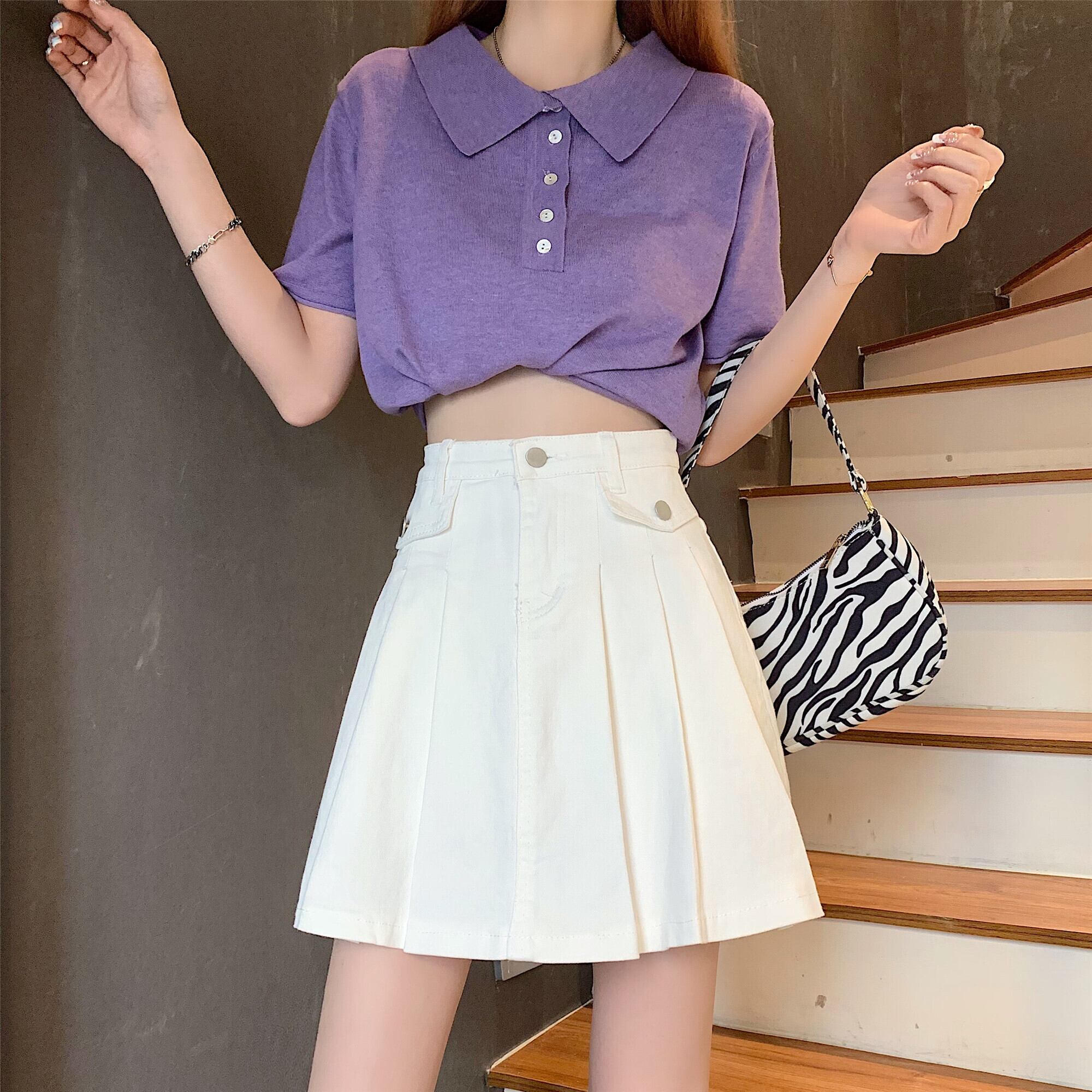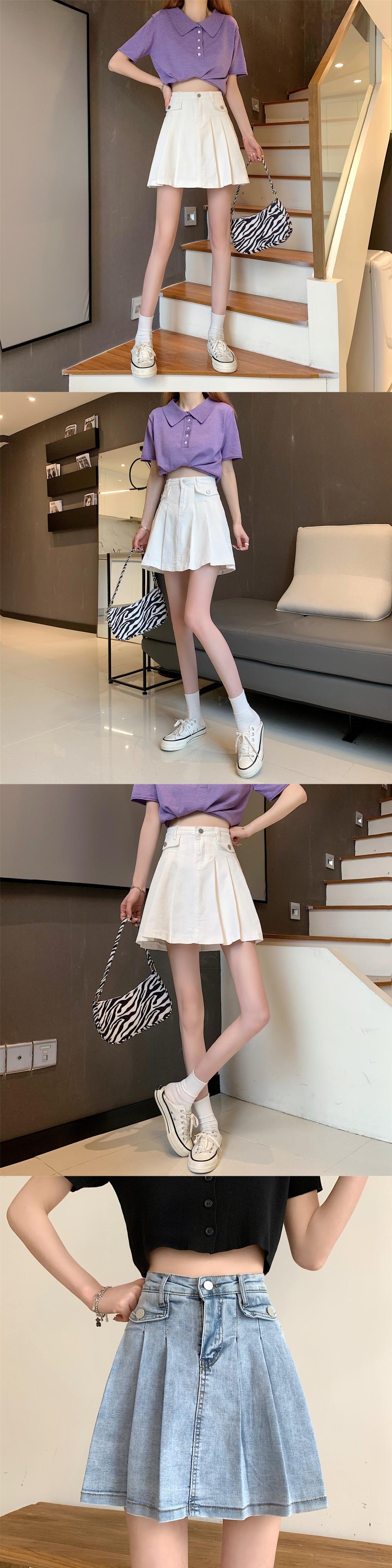 スカート サマーハイウェストウェストAラインプリーツショート 夏物 YY-ファッション63106178153