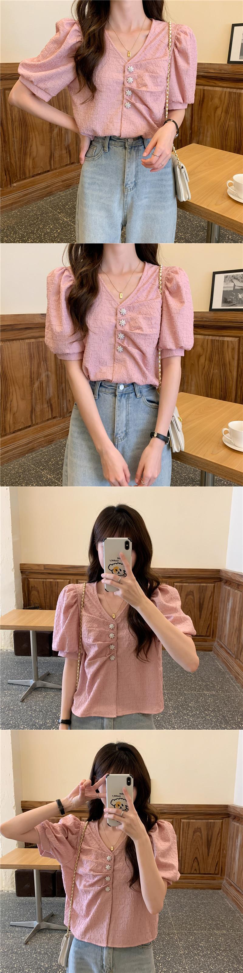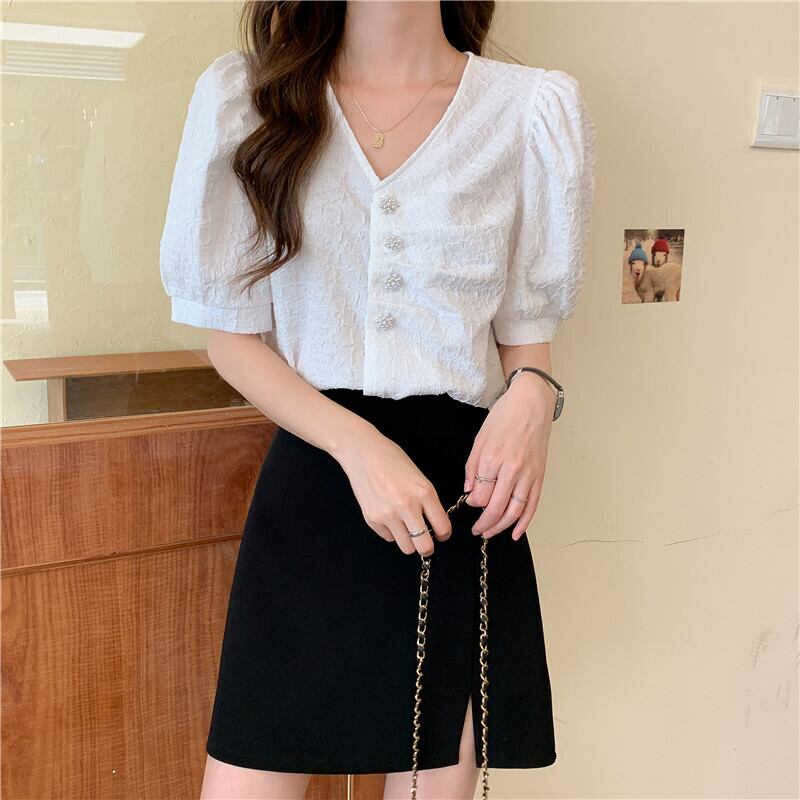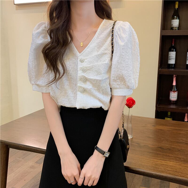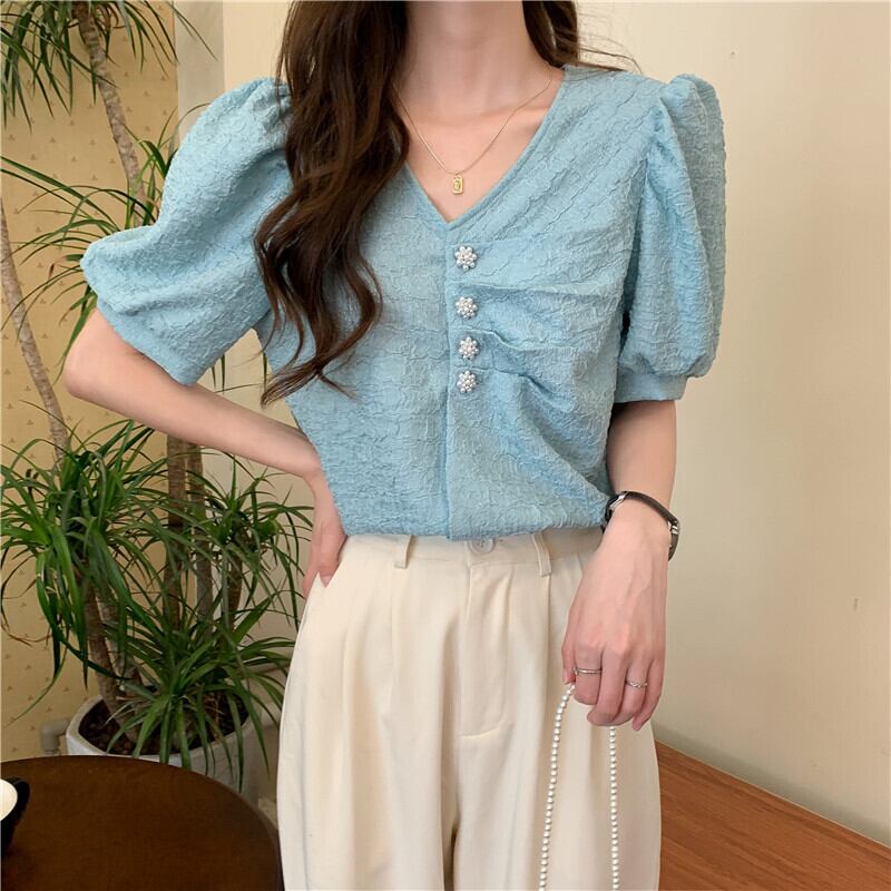 シャツ サマー薄手Vネックスリーブスリムトップス 夏物 YY-ファッション8188424789