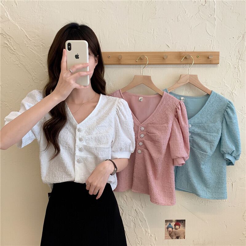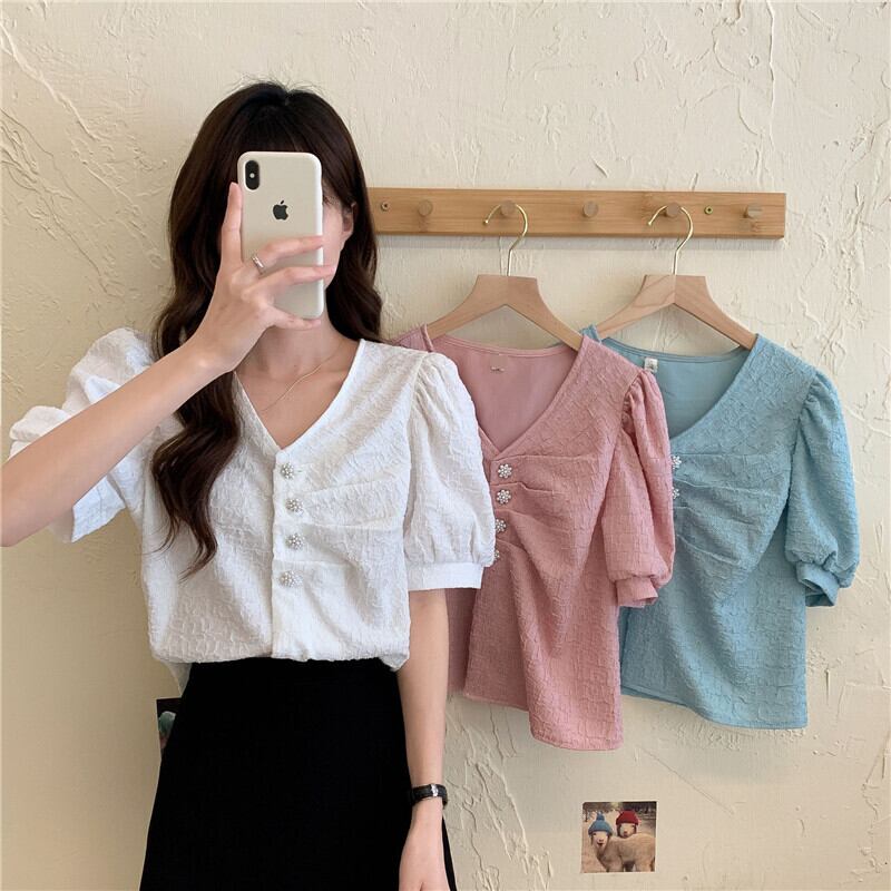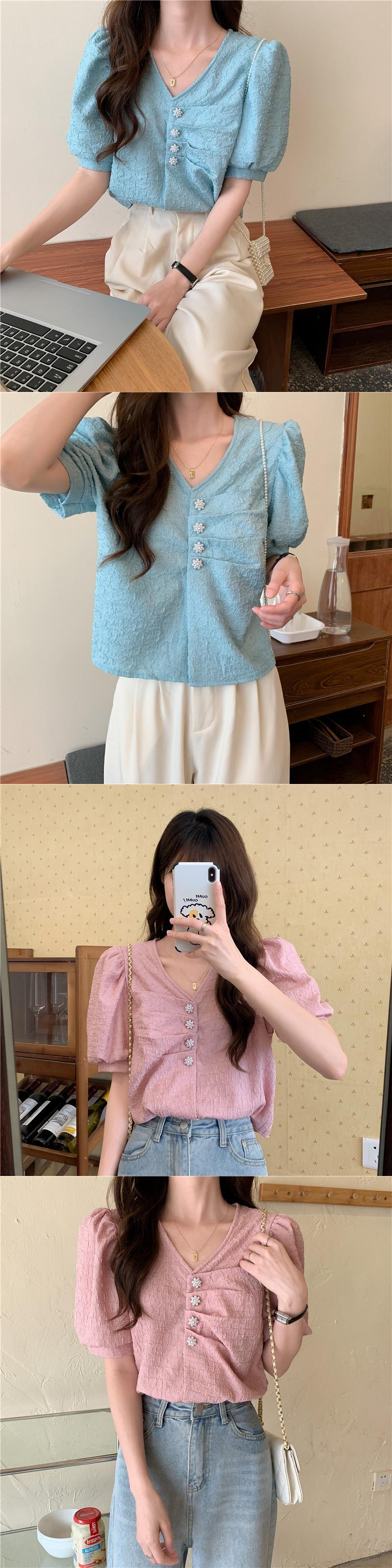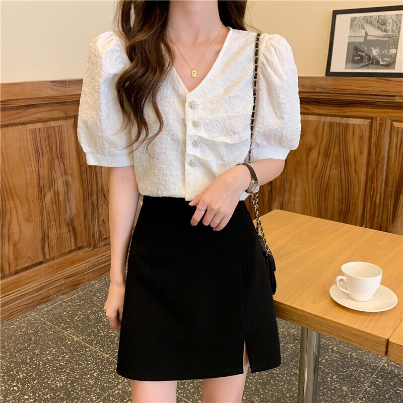 シャツ サマー薄手Vネックスリーブスリムトップス 夏物 YY-ファッション8188424789