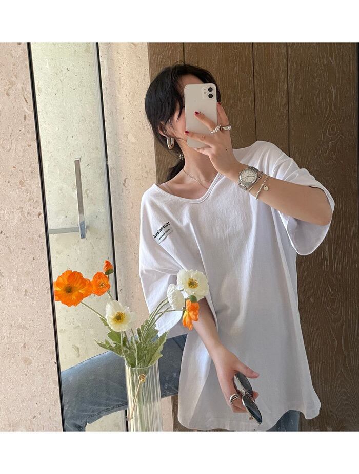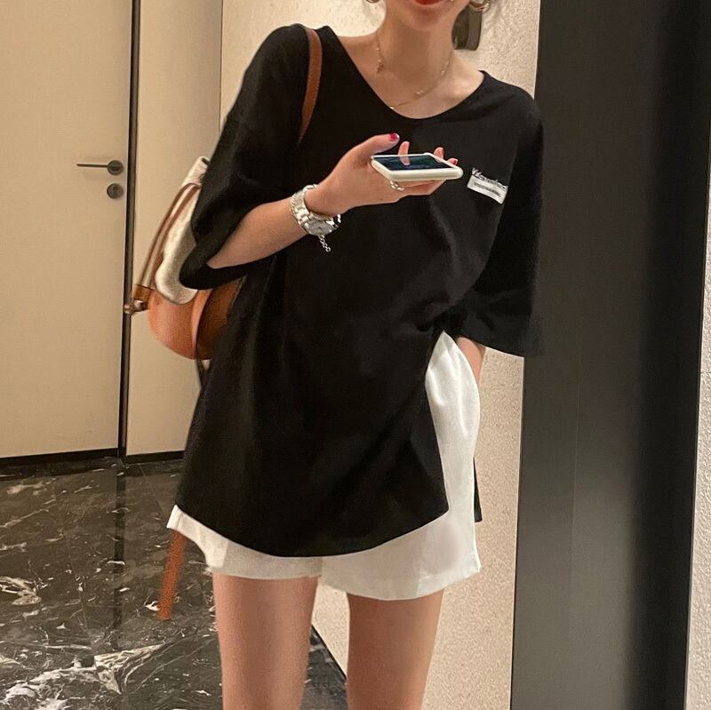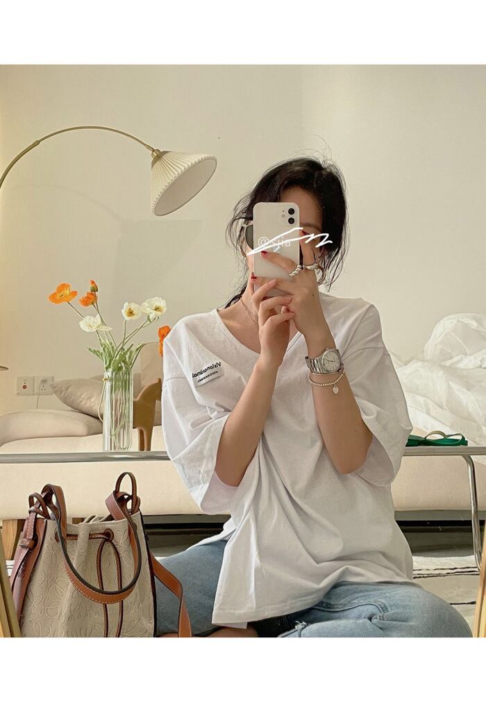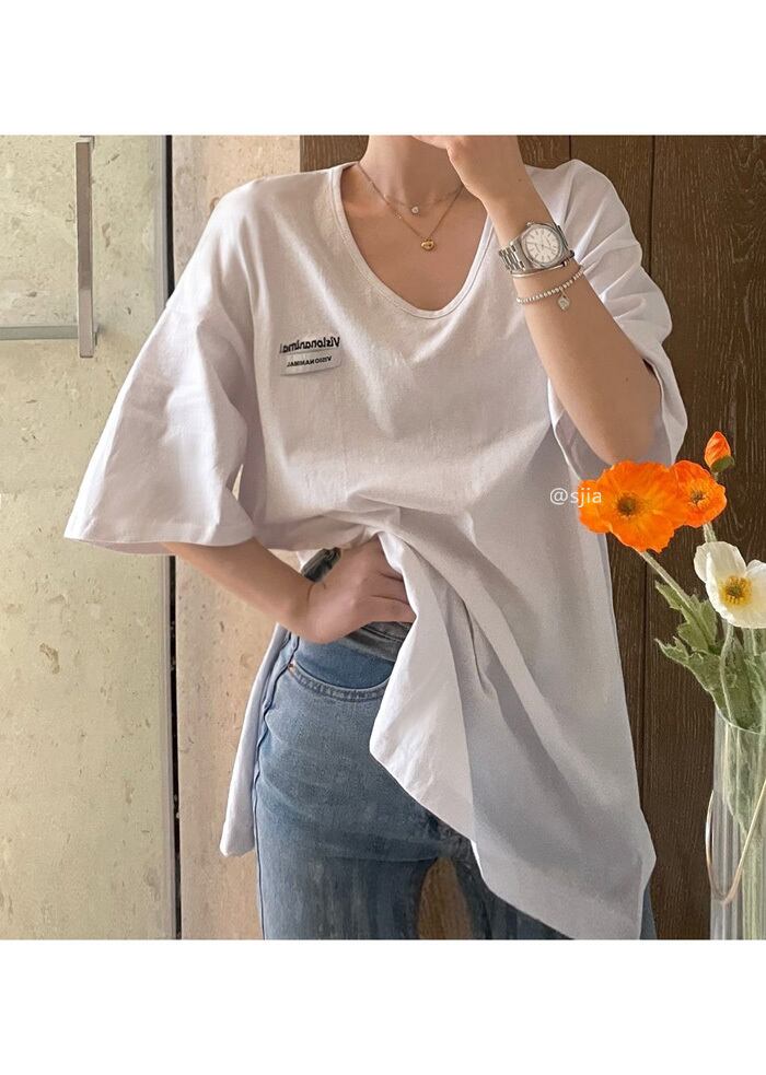 ベーシックVネックTシャツ レディースサマールーズホワイトトップス 夏物 YY-ファッション72029647252