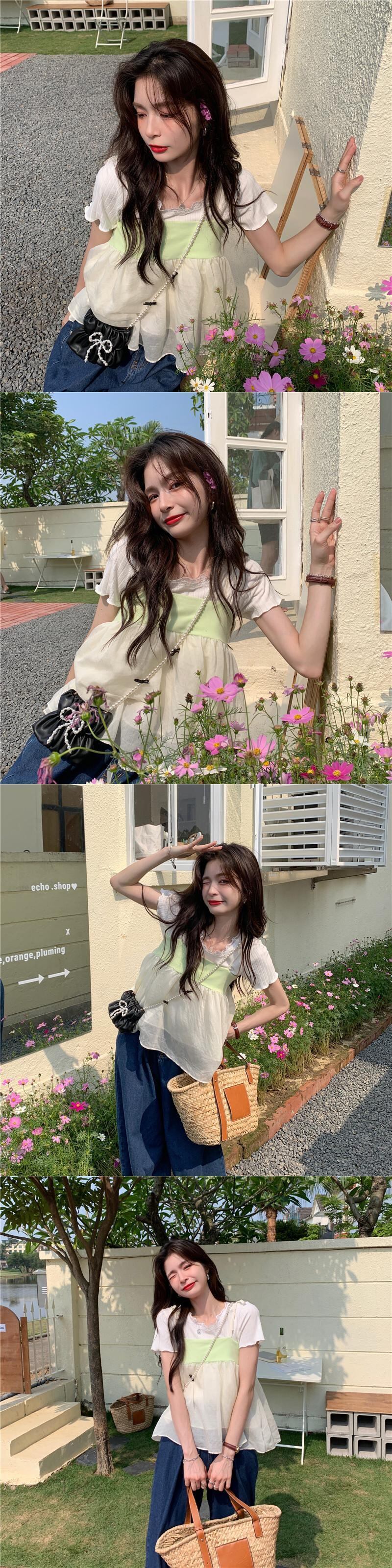 サマーバンドレースシャツ ストリート 夏物 YY-ファッション54922522826
