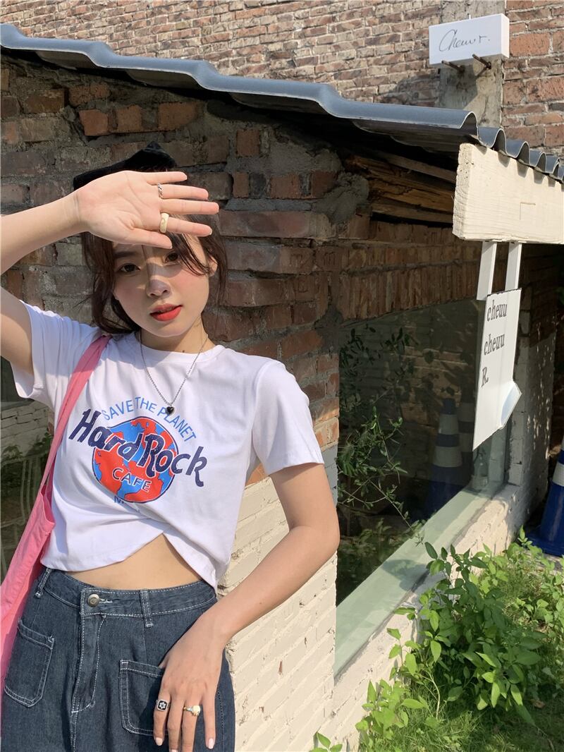 サマートップス ルーズショートプリント柄Tシャツ 夏物 YY-ファッション74386275805