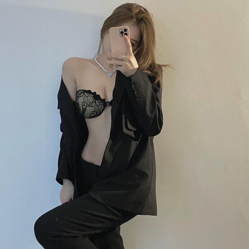 サマーストラップレスブラ レースブラック 夏物 YY-ファッション46335504369