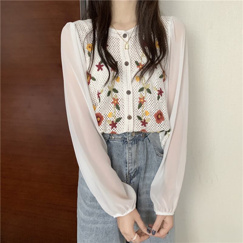 サマーレースショートトップス シフォンシャツ 大人ガーリー スウィート キュート カジュアル 夏物 YY-ファッション73120447442