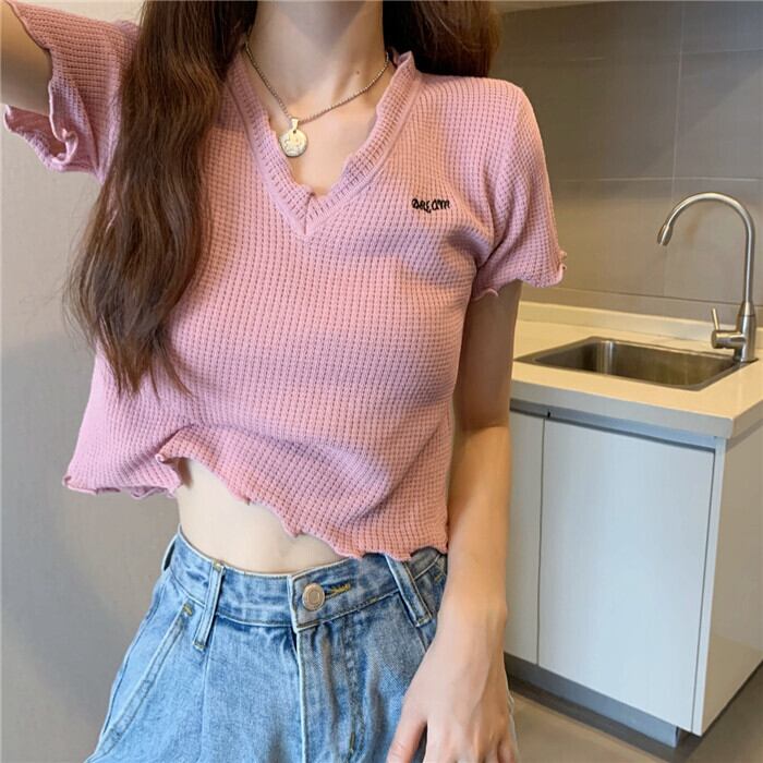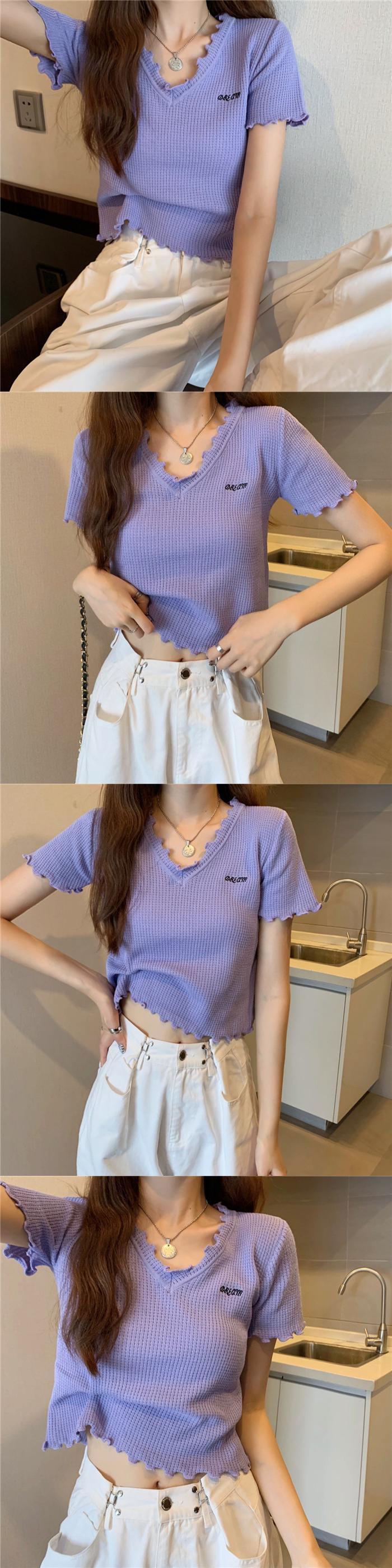 サマースリム薄手スタイルVネックショートセーター トップス 夏物 YY-ファッション82444257357