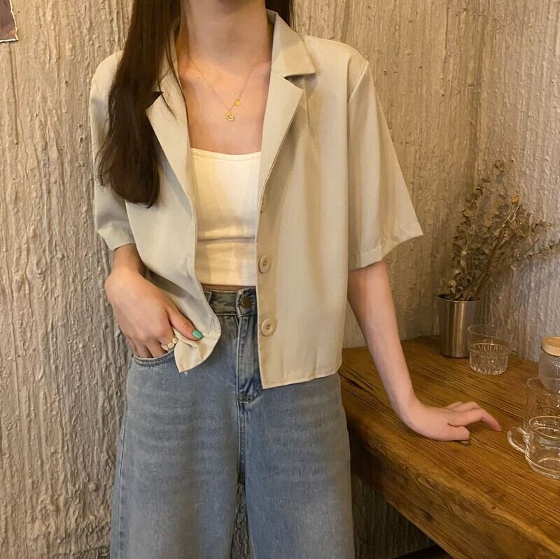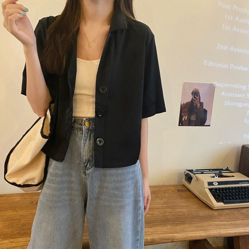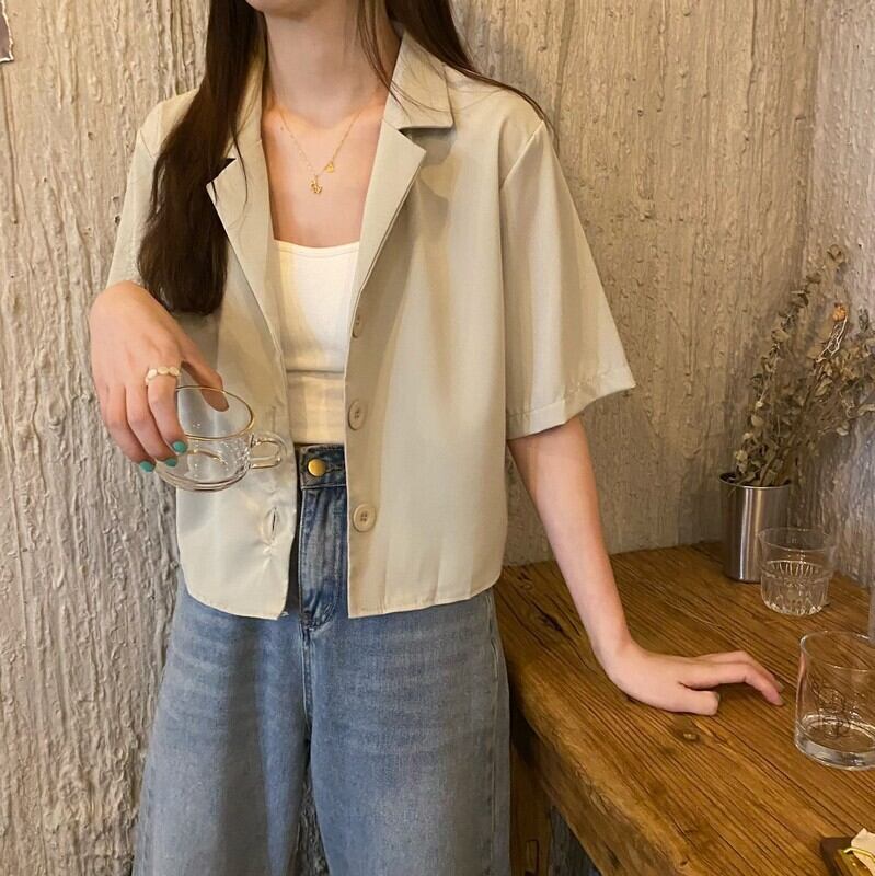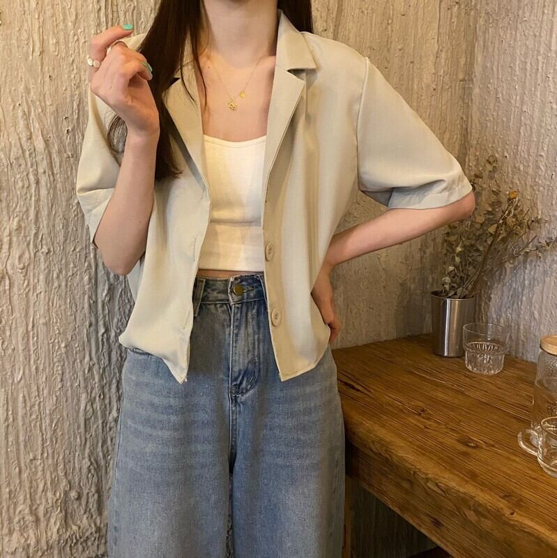 サマー薄手スタイルカラーショート半袖スリーブ ハーフスリーブ ブラウス 夏物 YY-ファッション50022307302