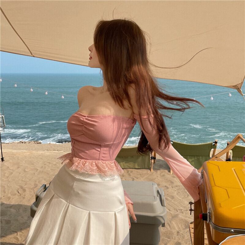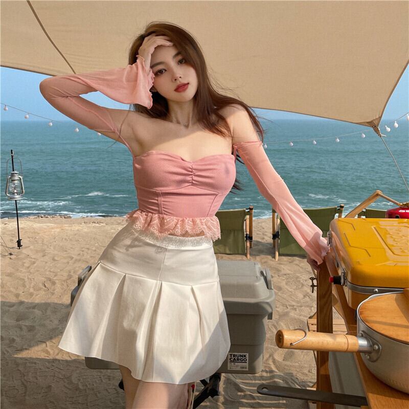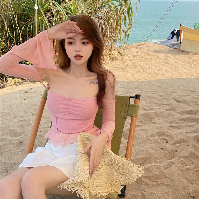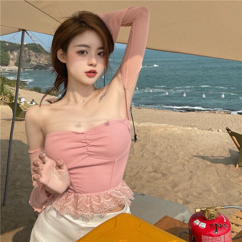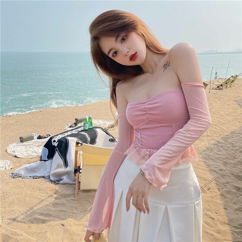 レースTシャツ サマースリム薄手ショートトップス ロング 夏物 ステッチ YY-ファッション45527679358