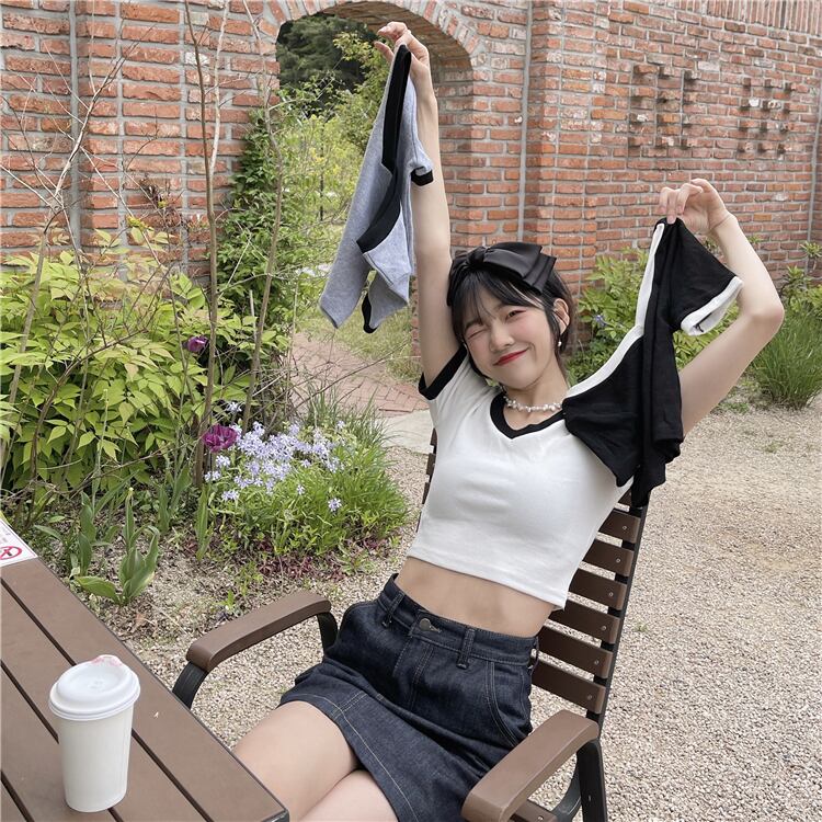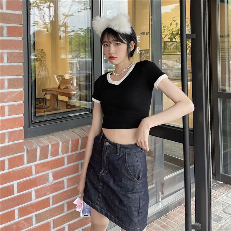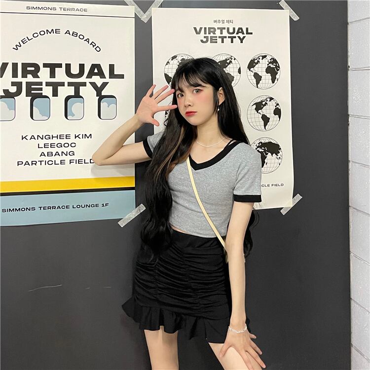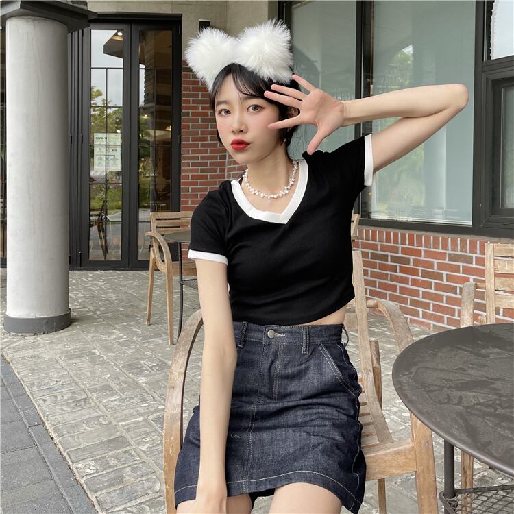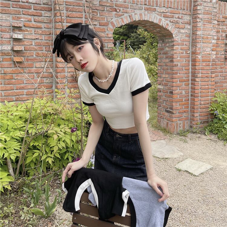 VネックショートTシャツ サマースリム薄手カジュアルトップス 夏物 YY-ファッション97728923510