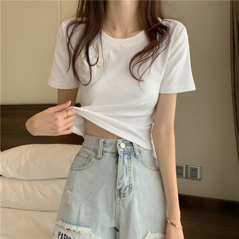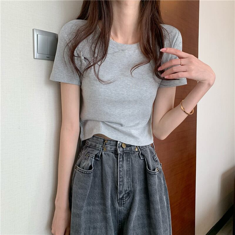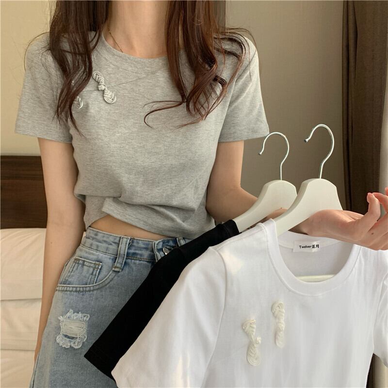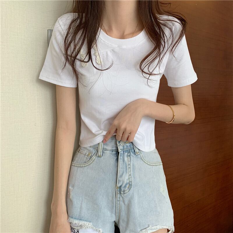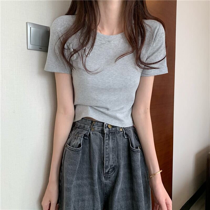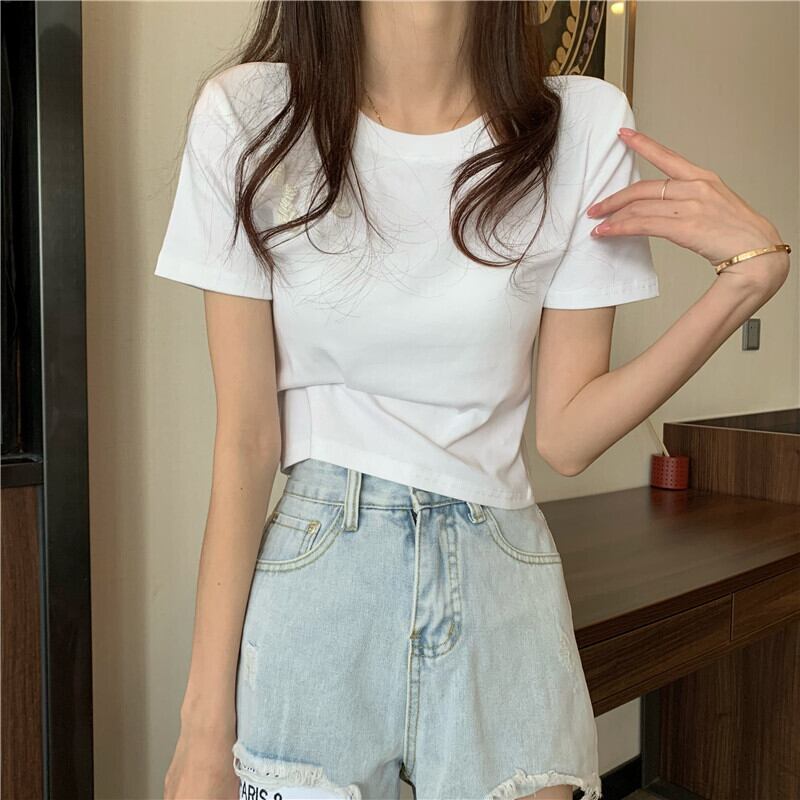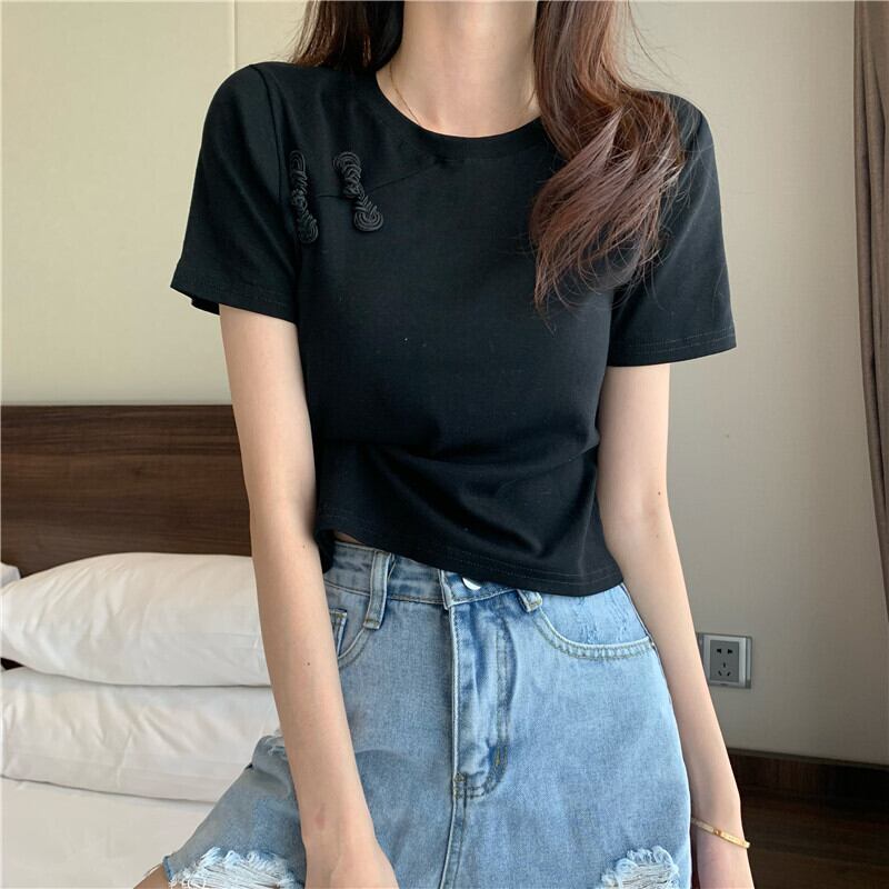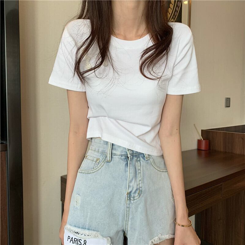 スリムTシャツ シャツ レディースサマースタイルスタンダードショートトップス レトロ 夏物 YY-ファッション5069847433
