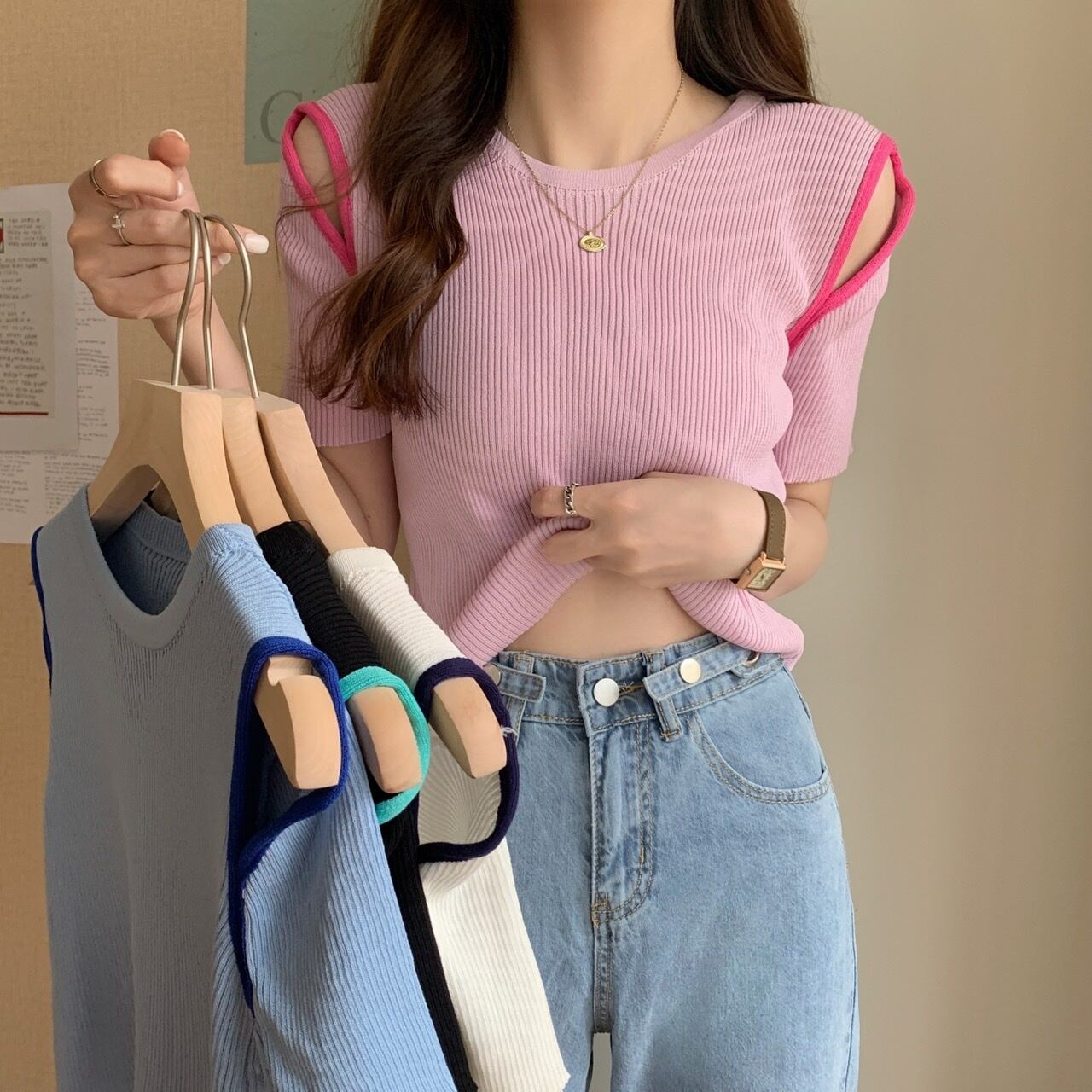 ストラップレスセーター 薄手サマーTシャツ 夏物 YY-ファッション44232425632