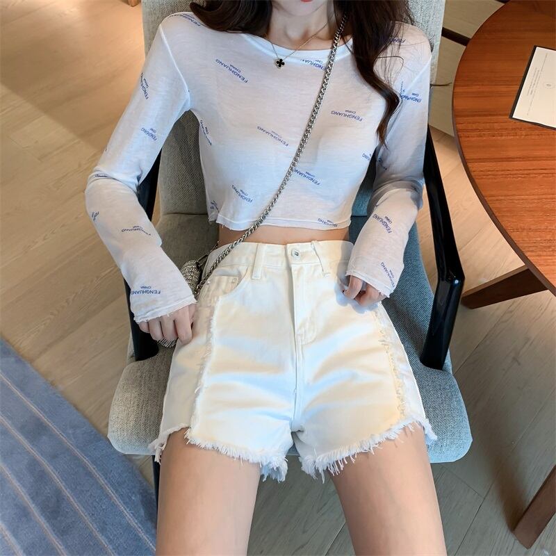 ジーンズ サマーハイウェストルーズホワイトショーツ 夏物 ブルマー YY-ファッション5890953350