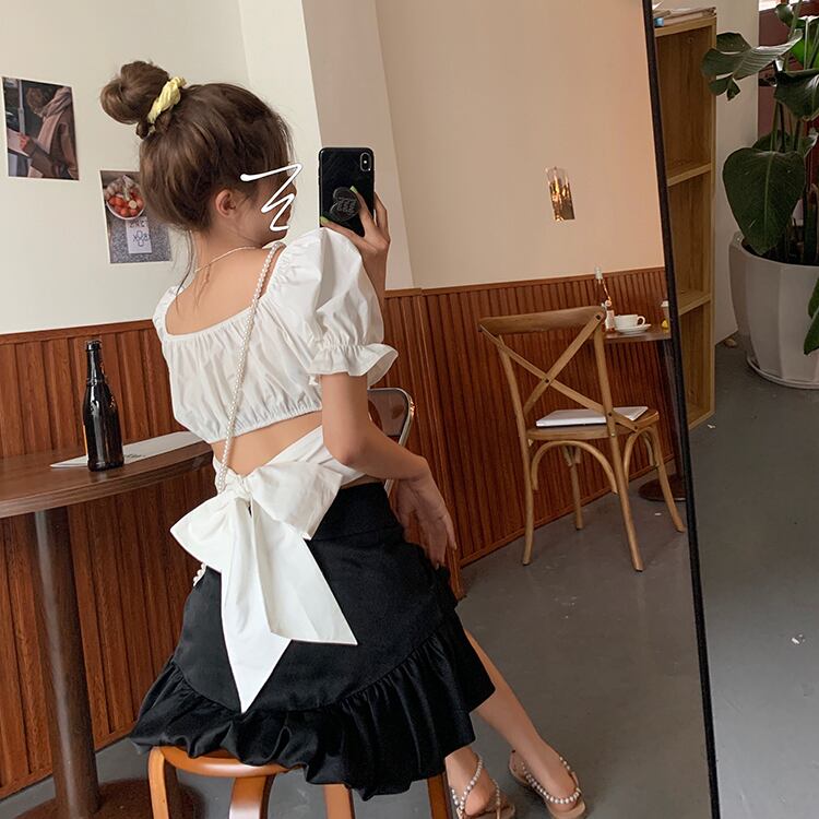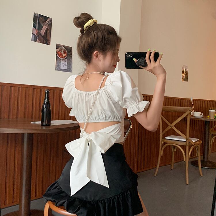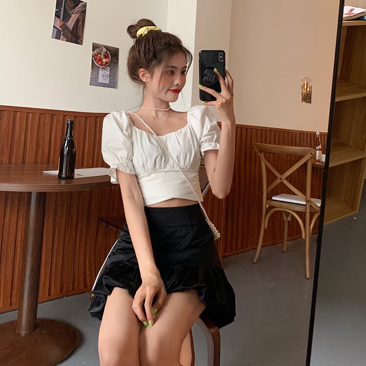 シャツ レディースサマースリーブハイウェストウェストクロップトップ トップス 大人ガーリー スウィート キュート カジュアル 夏物 YY-ファッション43796009709