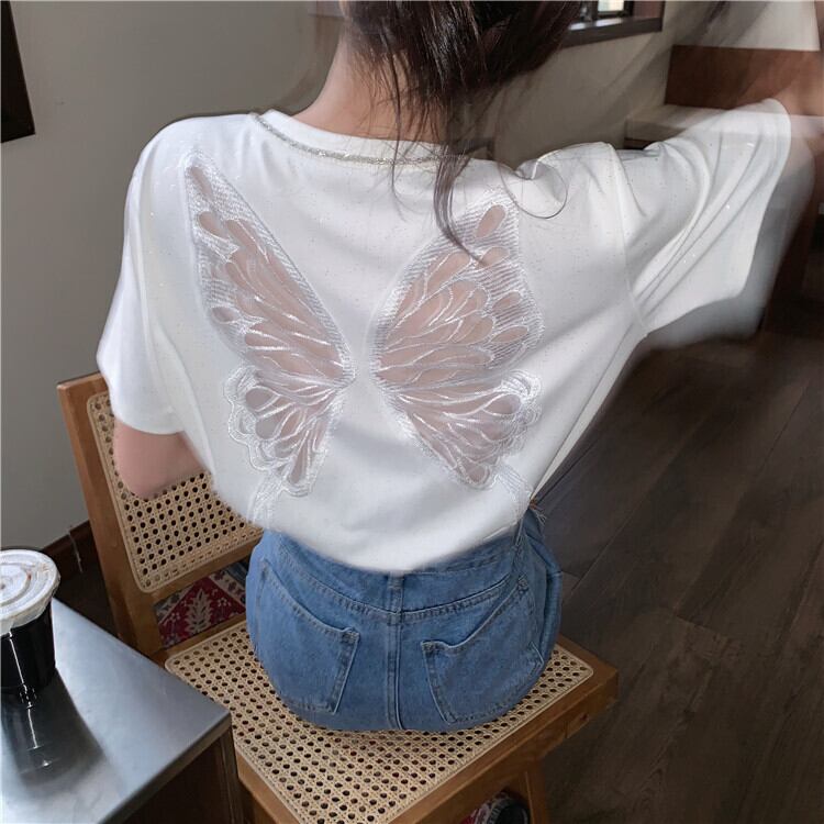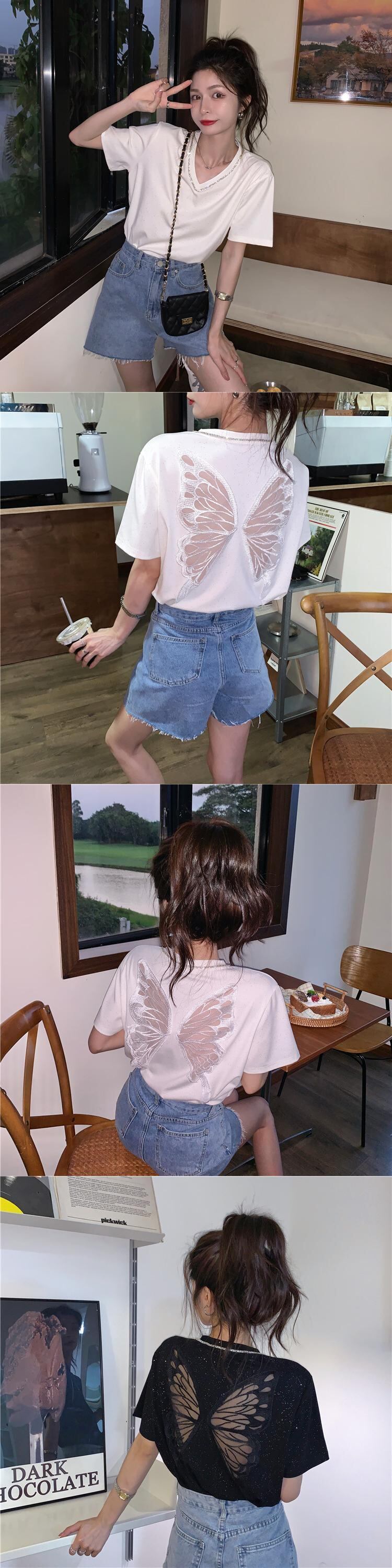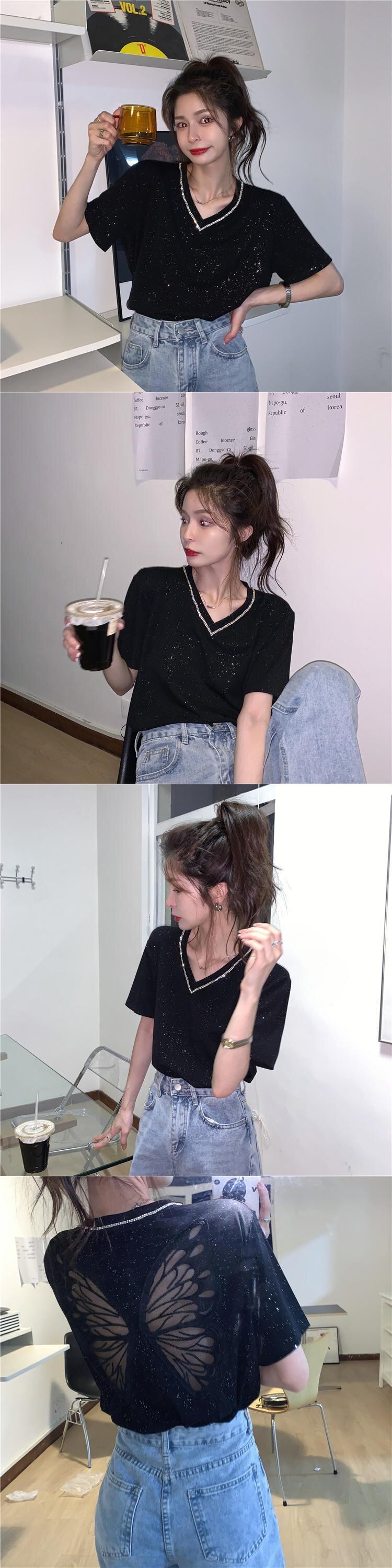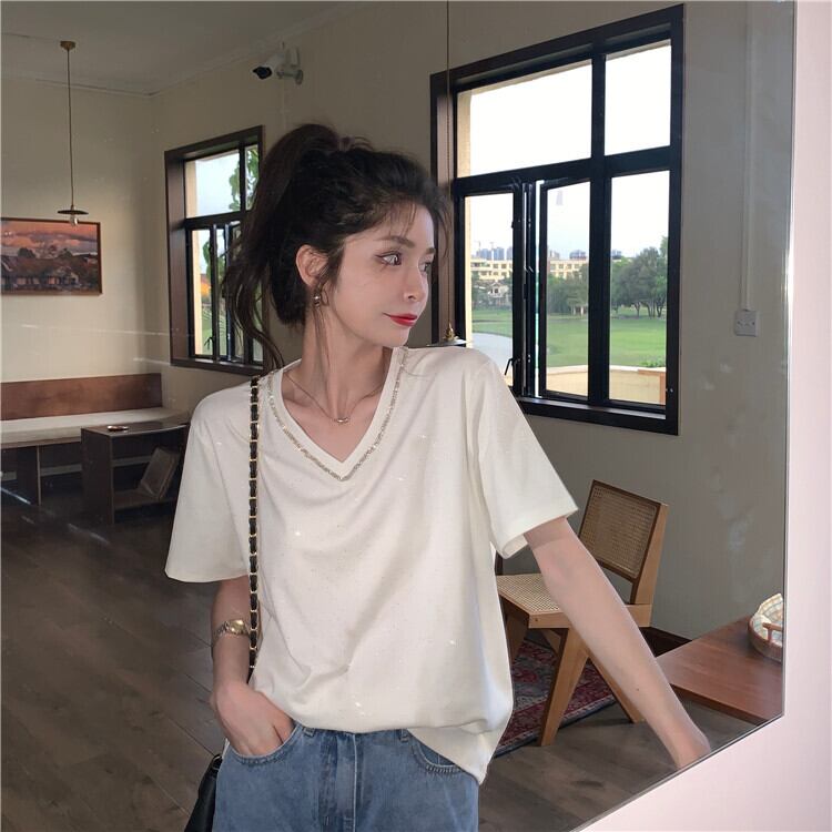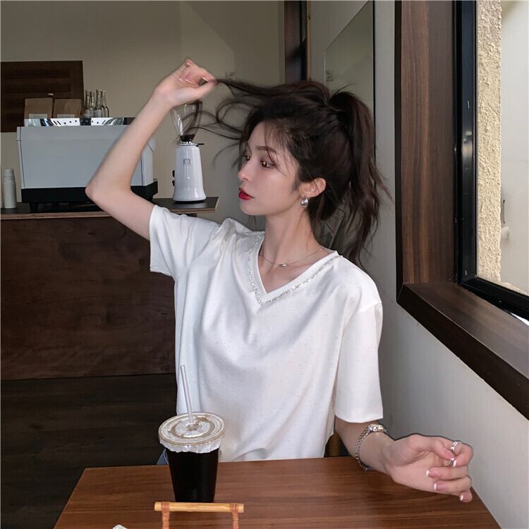 ホワイトVネックホルターTシャツ レディースサマーレッドトップス ストリート 夏物 YY-ファッション88943207751