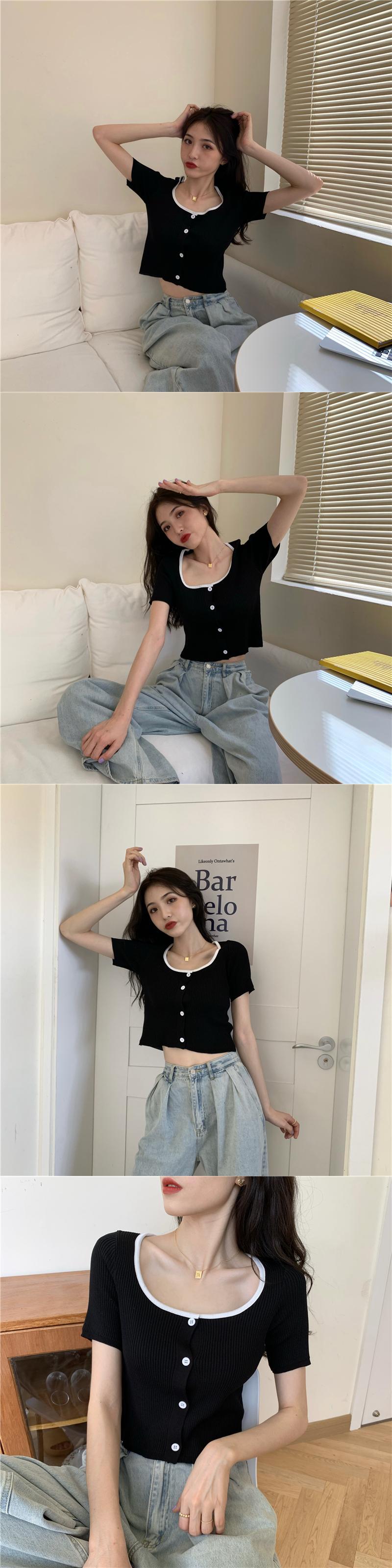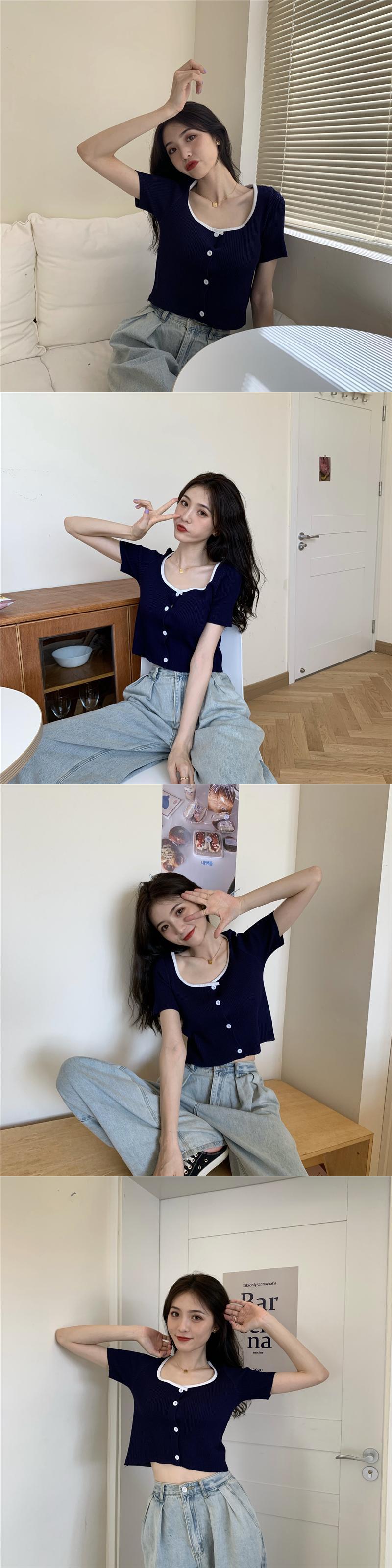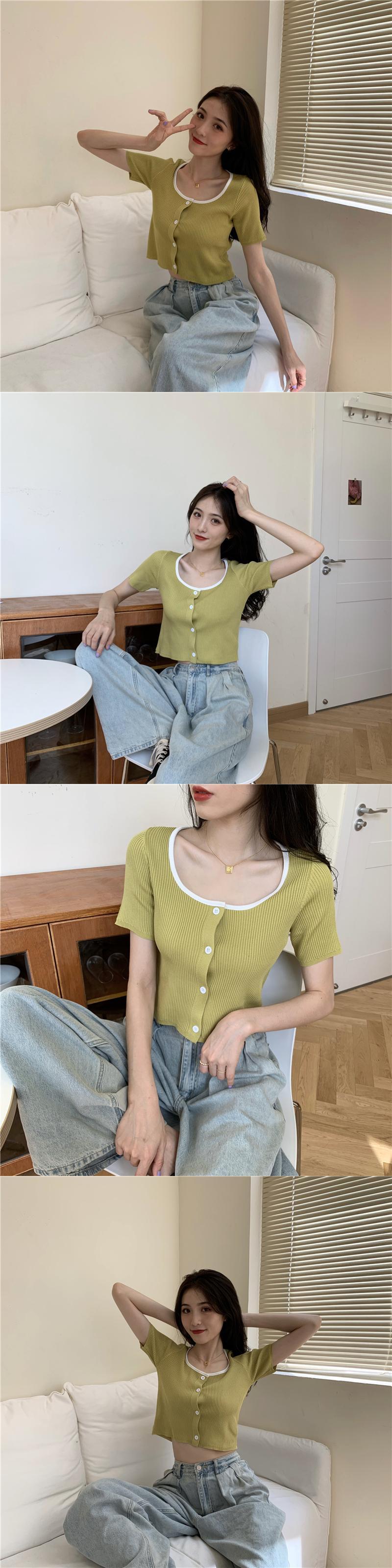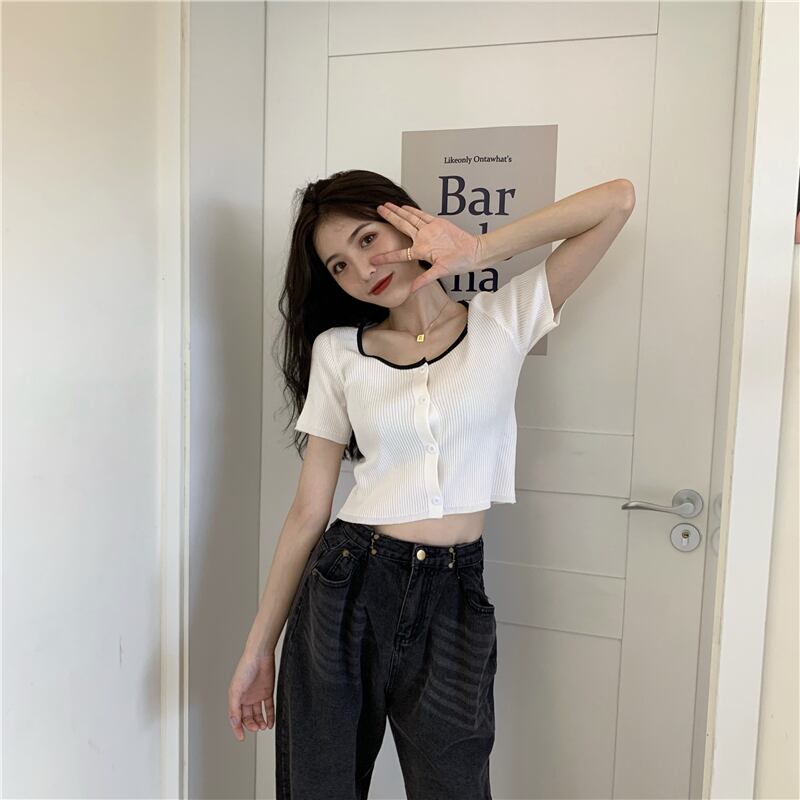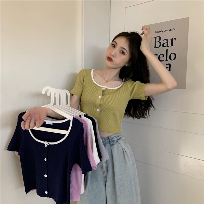 カラーショートセーター サマースタイルレッドカーディガントップス ストリート 夏物 スクウェア YY-ファッション26828908307