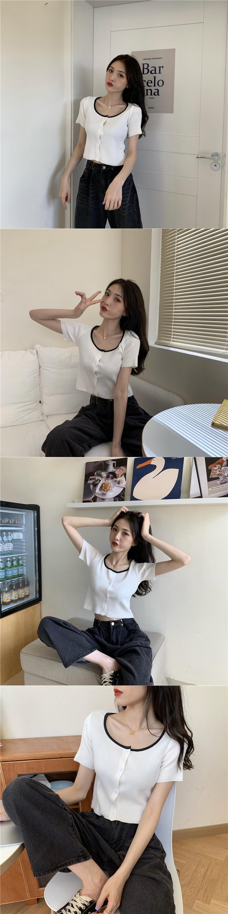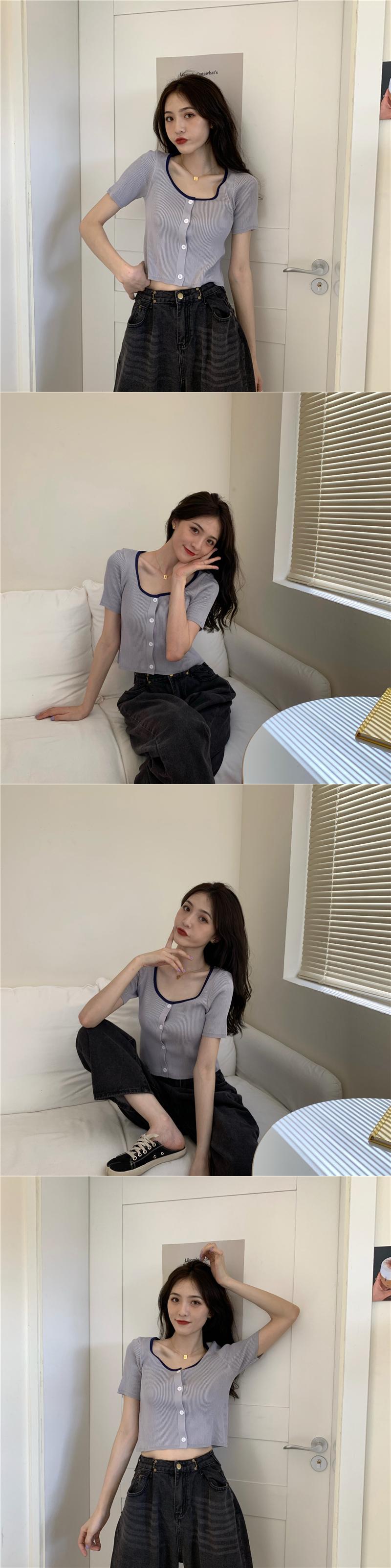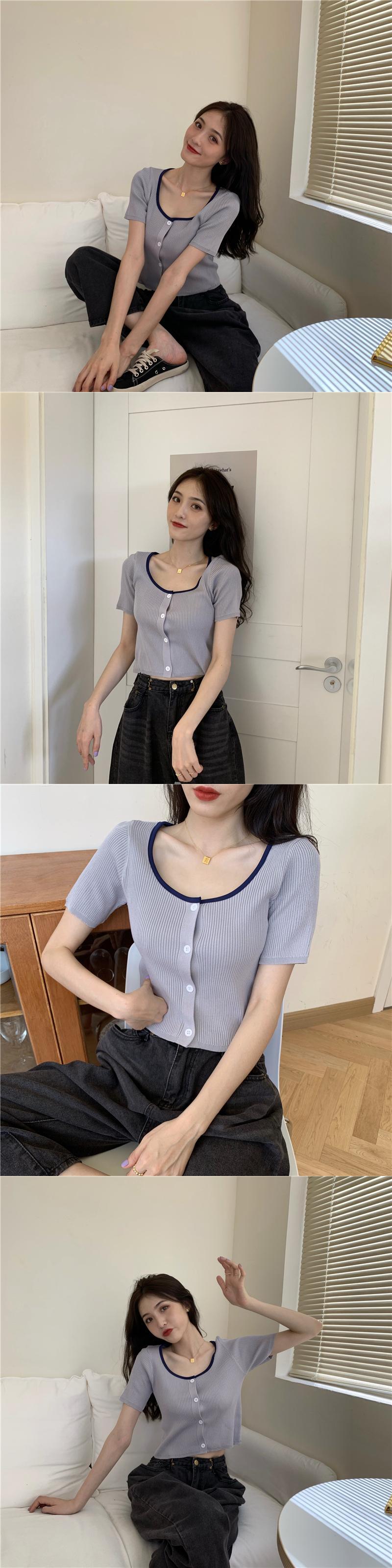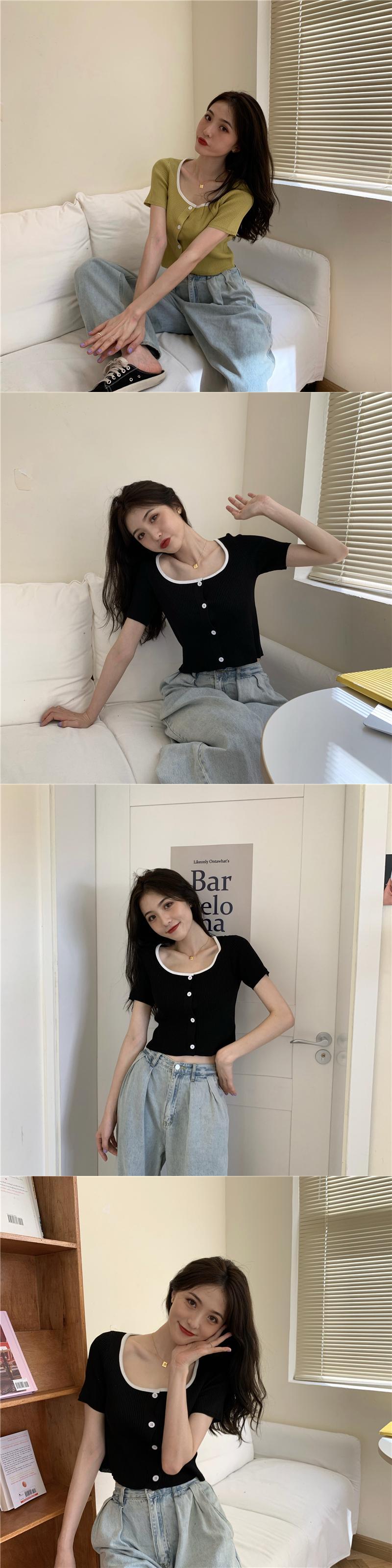 カラーショートセーター サマースタイルレッドカーディガントップス ストリート 夏物 スクウェア YY-ファッション26828908307