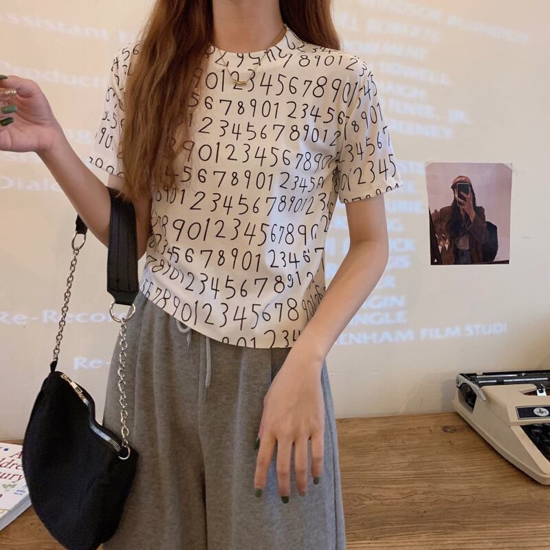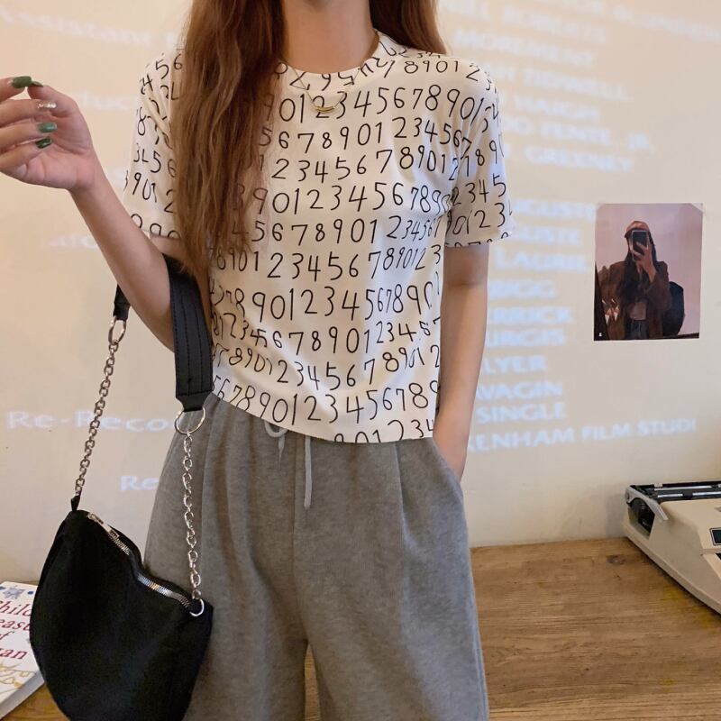 プリントラウンドネックブラックTシャツ レディースサマースタイルルーズトップス 夏物 Oネック YY-ファッション73794368358