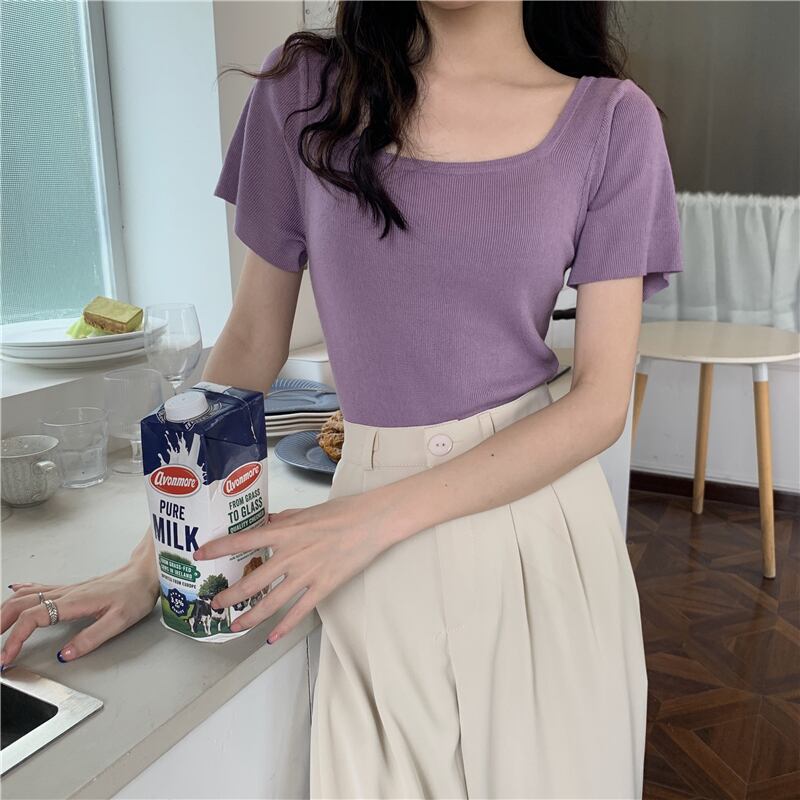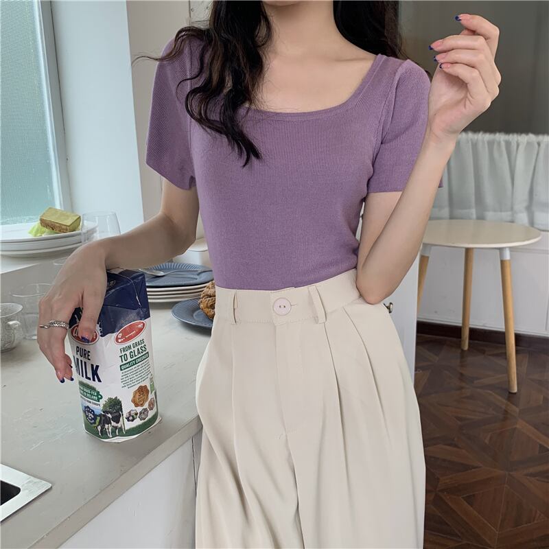 ルーズホワイトTシャツ シャツ サマースリムトップス 夏物 スクウェア YY-ファッション58575583484