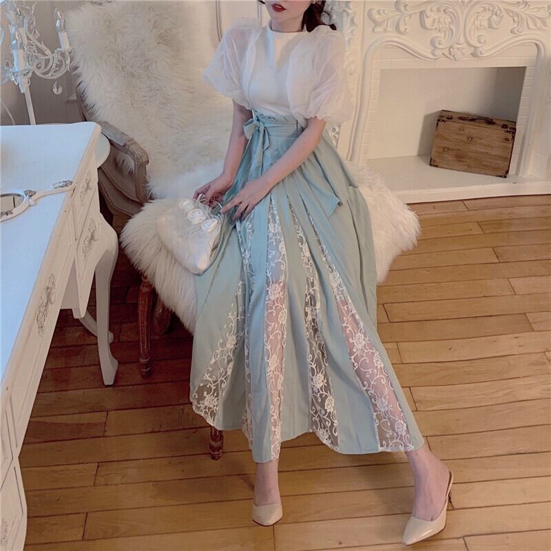 色:クリームあんずトップ,ミントグリーンスカート