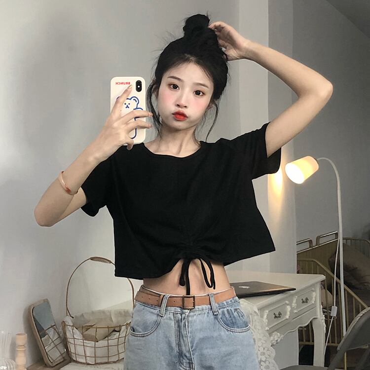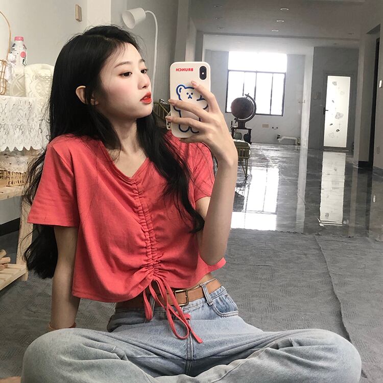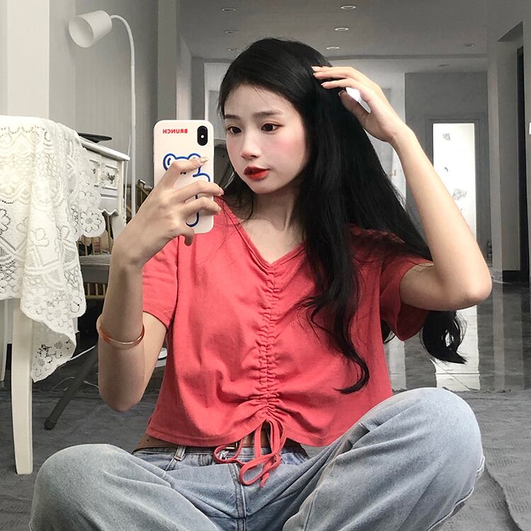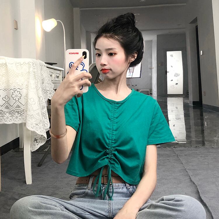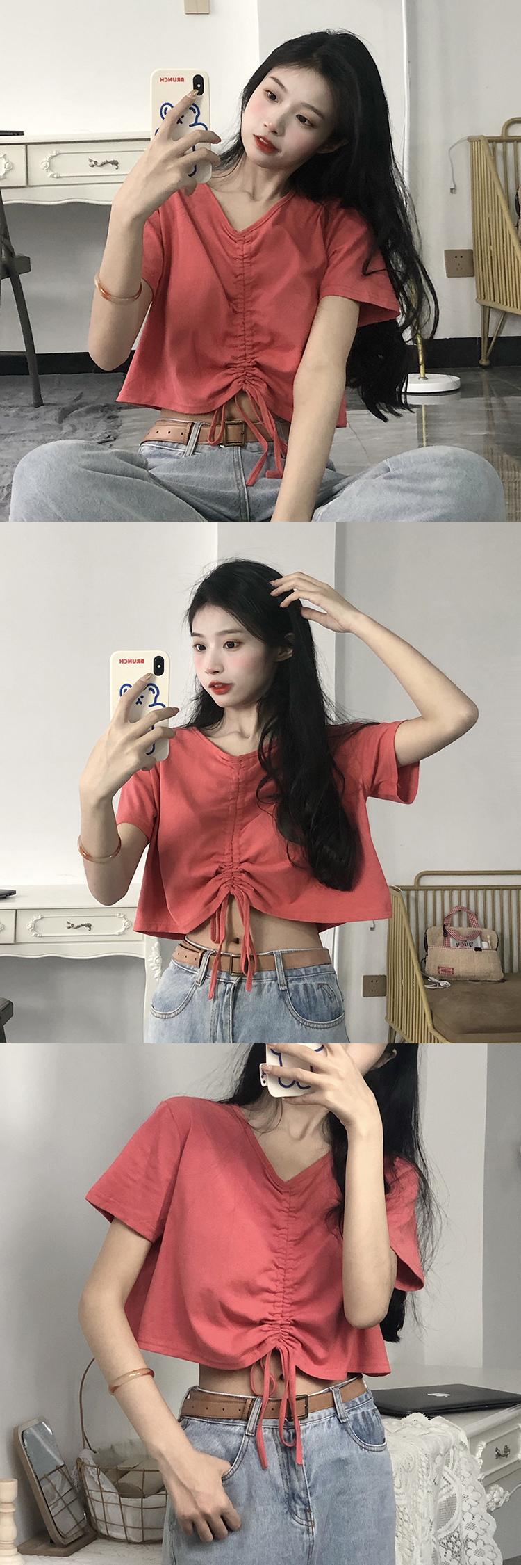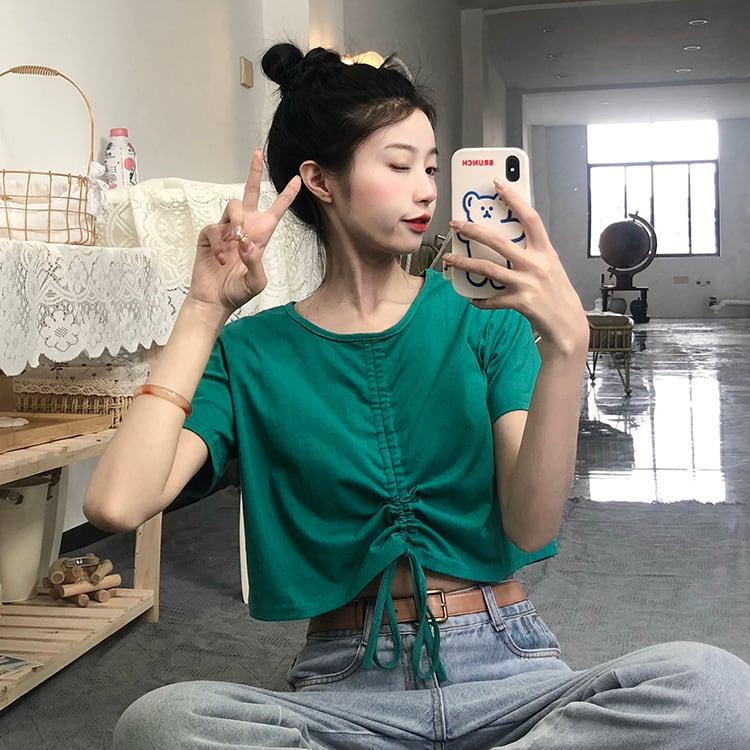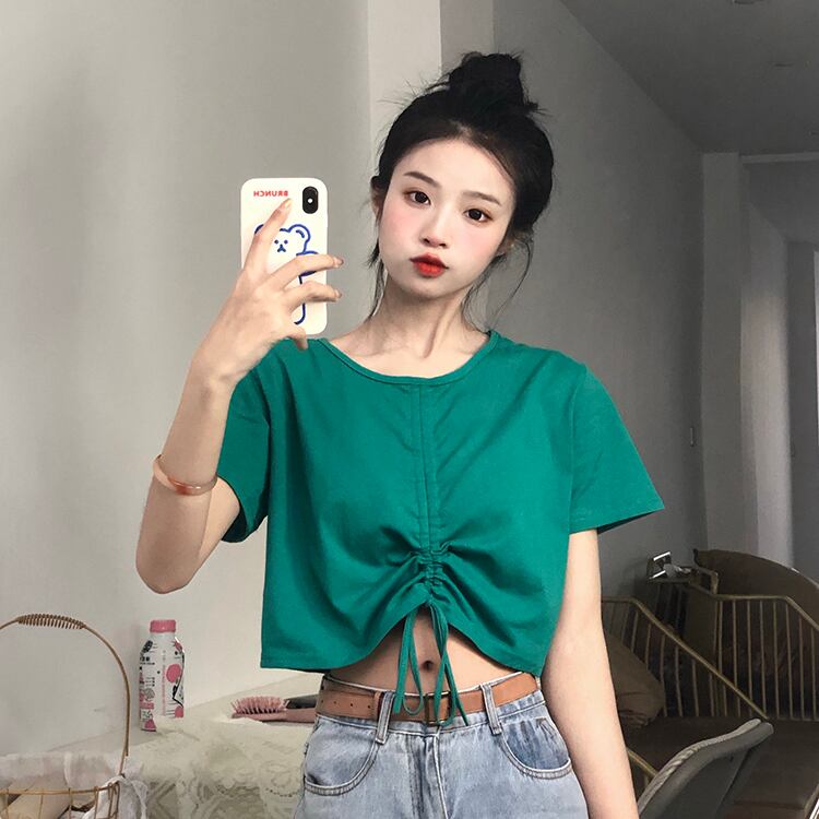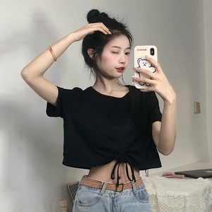 スプリングサマールーズ薄手ショートギャザーTシャツ トップス 春物 夏物 YY-ファッション77786774614