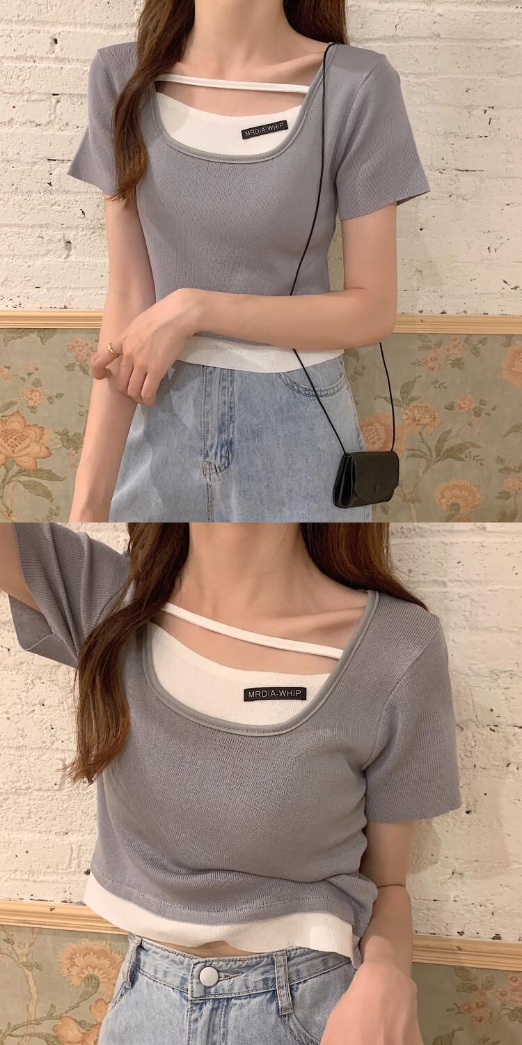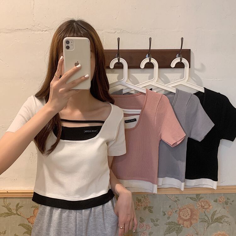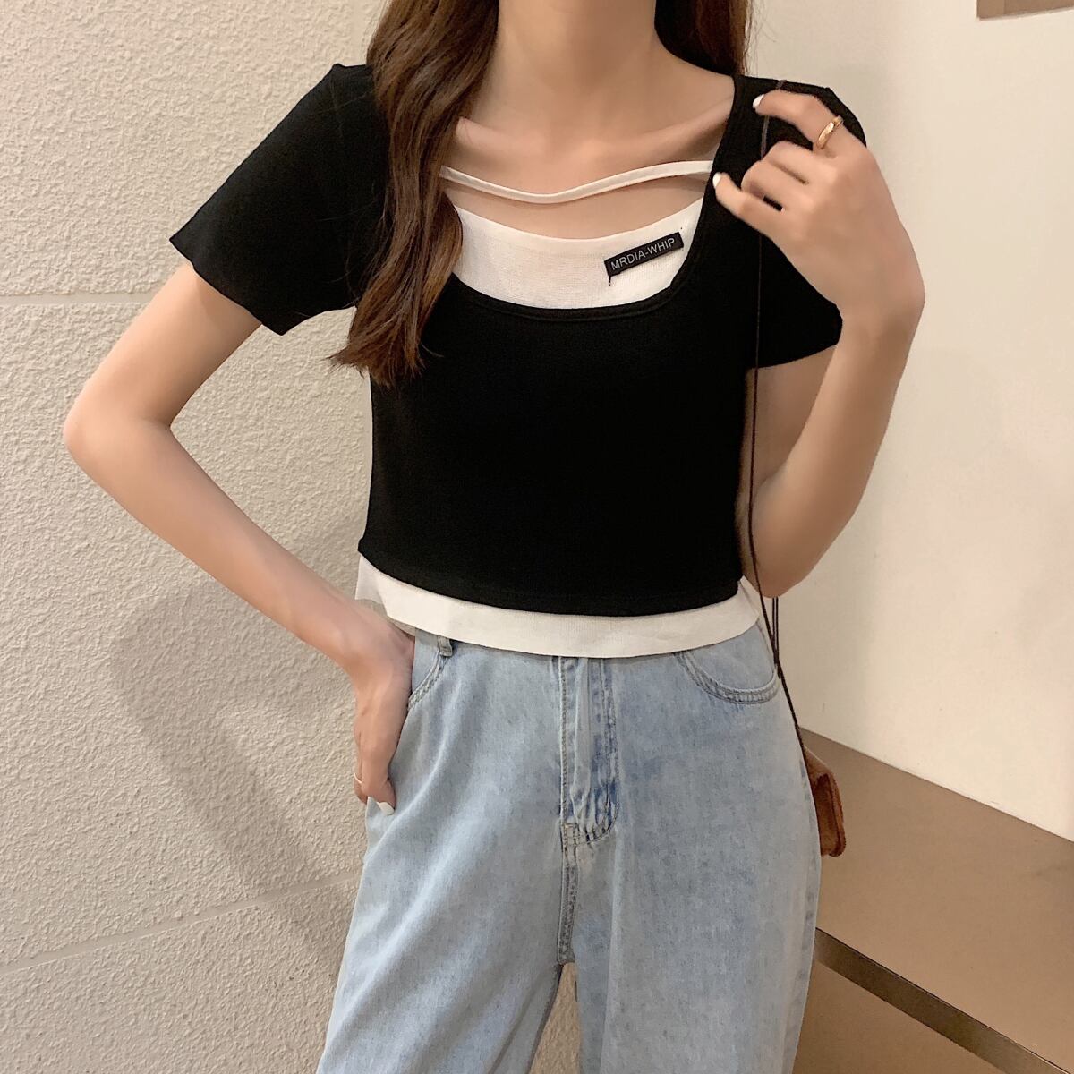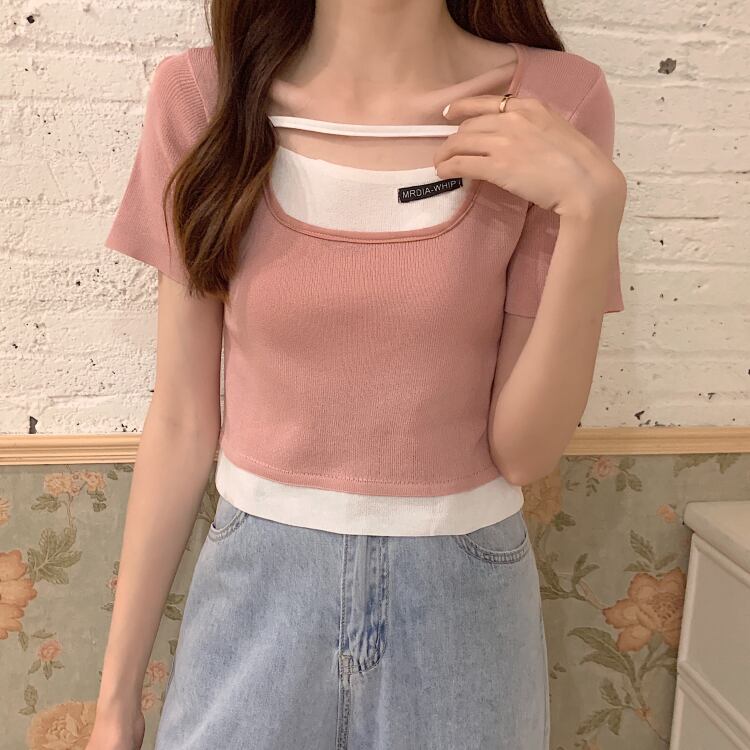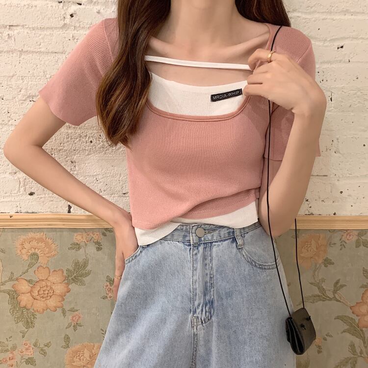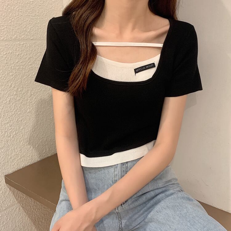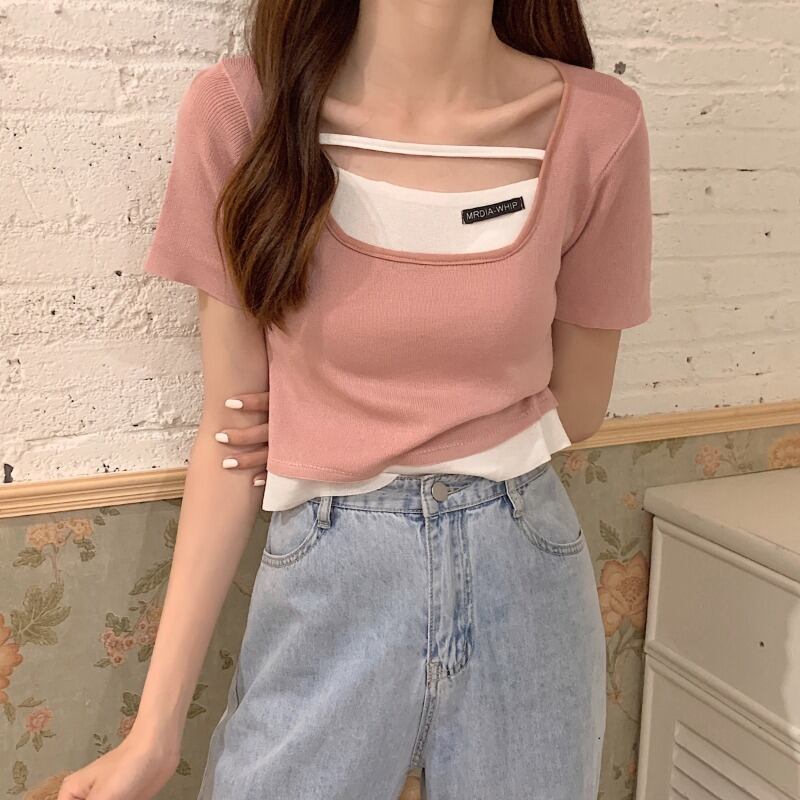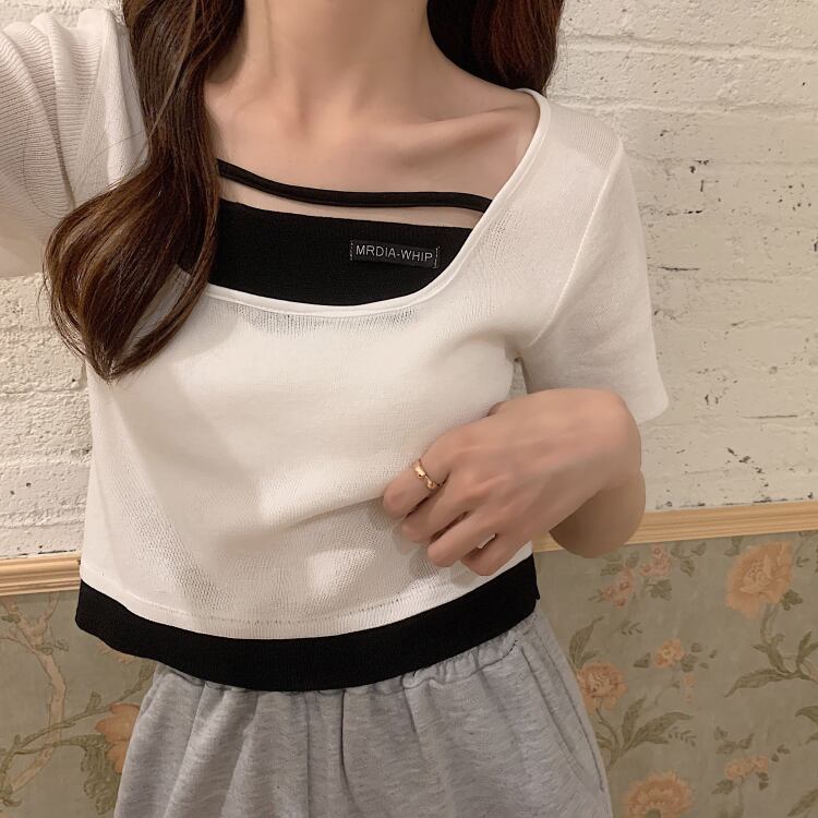 Tシャツ サマーニットショートトップス 夏物 スクウェア YY-ファッション11334226538