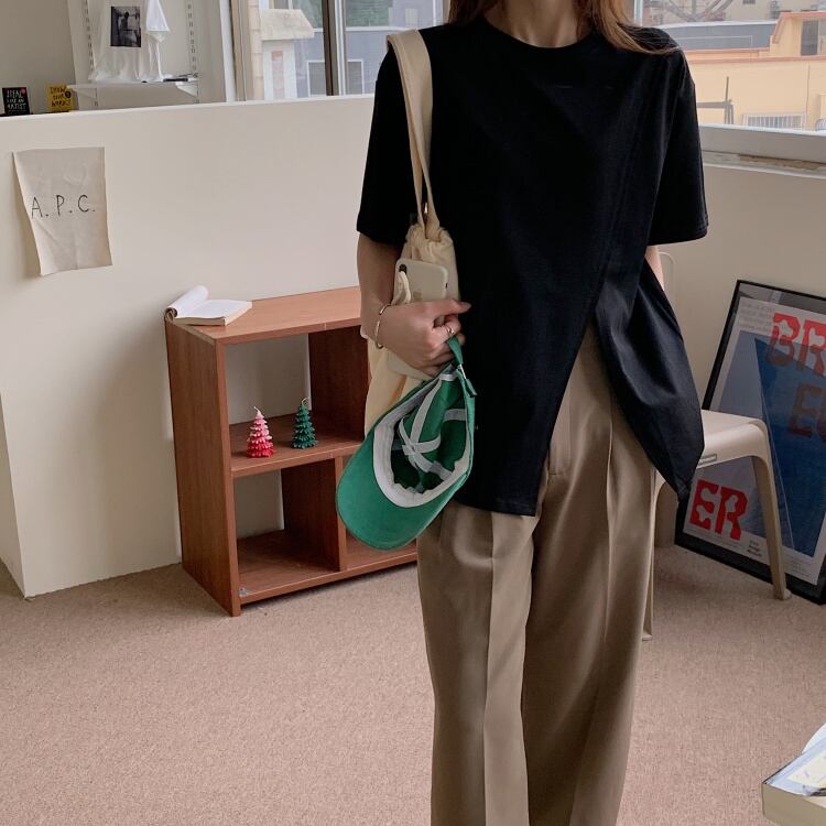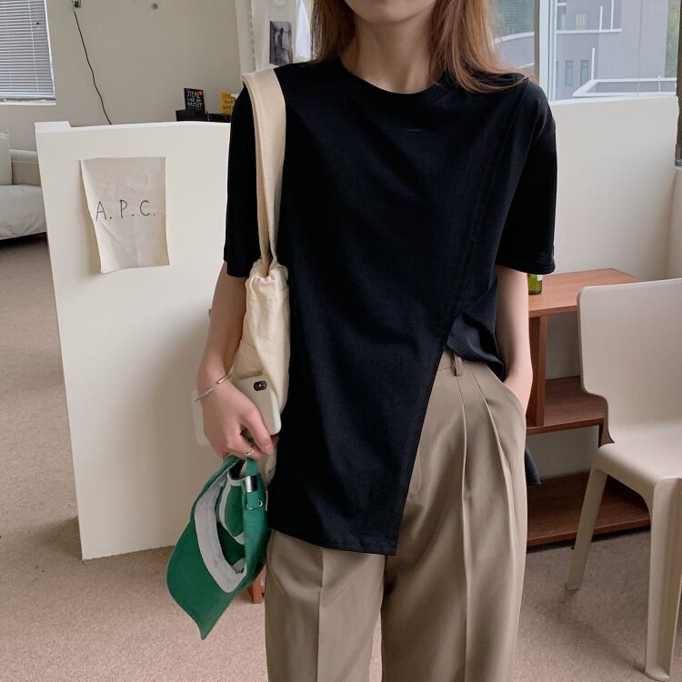 サマーレッドルーズホワイトTシャツ トップス 夏物 YY-ファッション1227303633