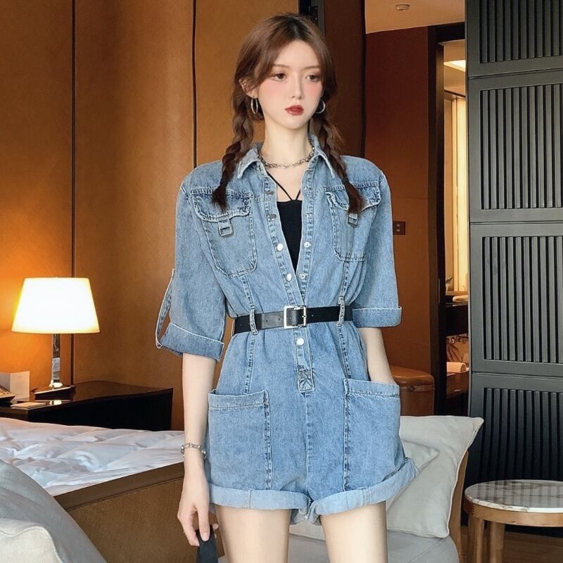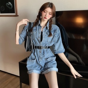 パンツ サマースタイルスタンダードジャンプスーツ オールインワン ハイウェストウェスト薄手レッド レトロ 夏物 YY-ファッション54851493324