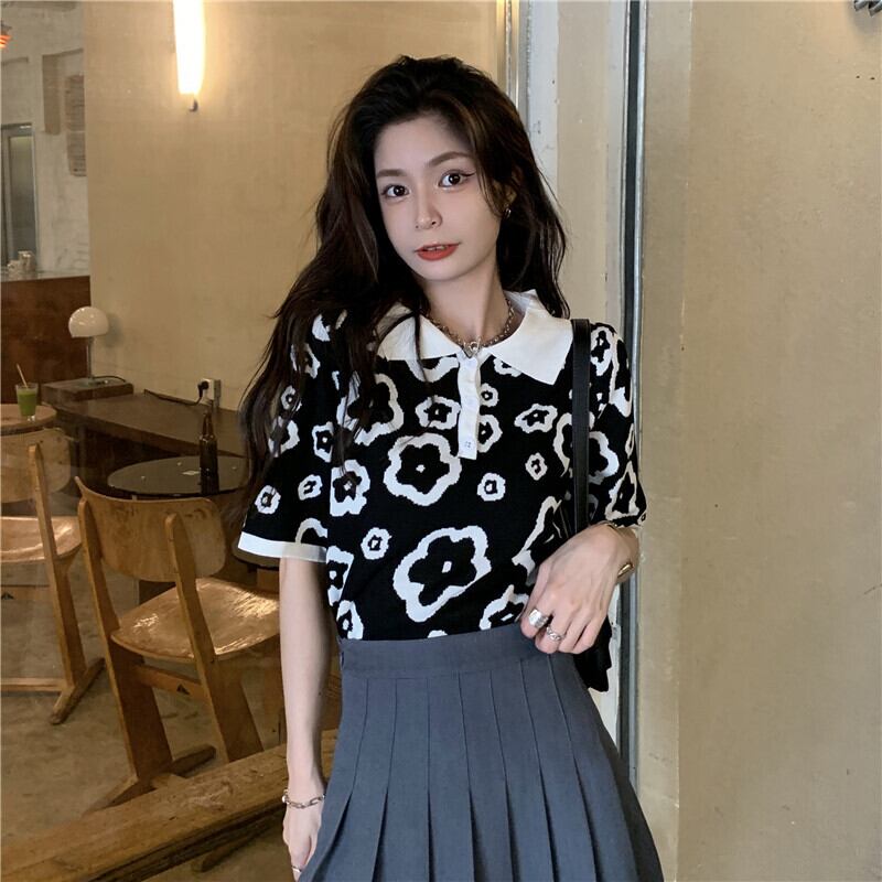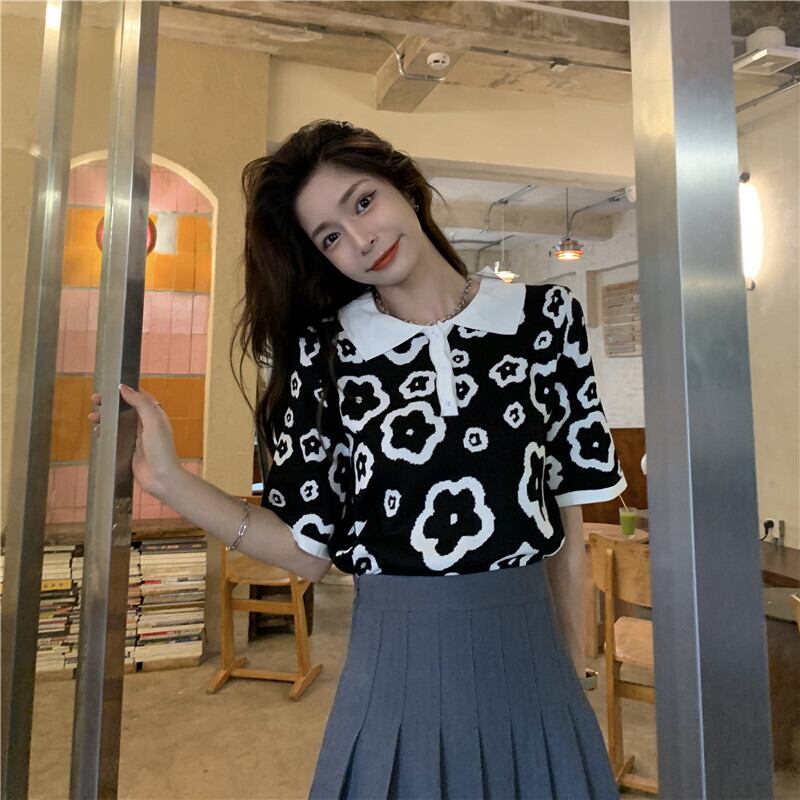 スタンダードニットセーター サマーカラー薄手トップス Tシャツ レトロ 夏物 YY-ファッション5386150437