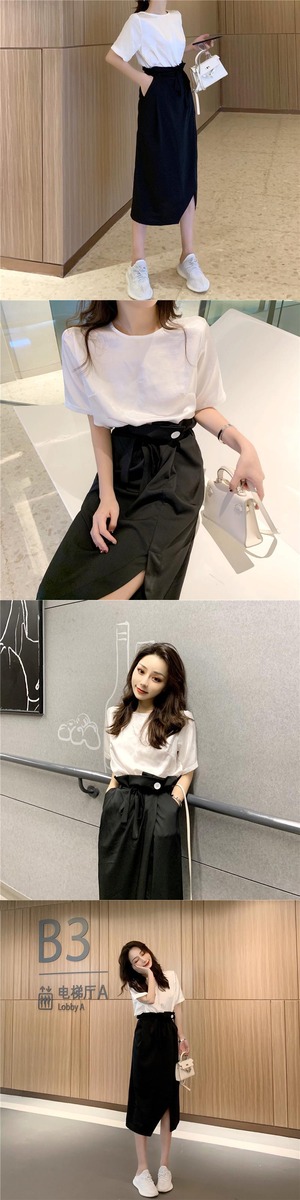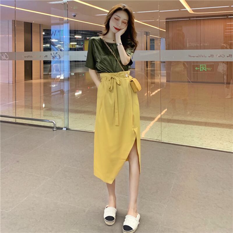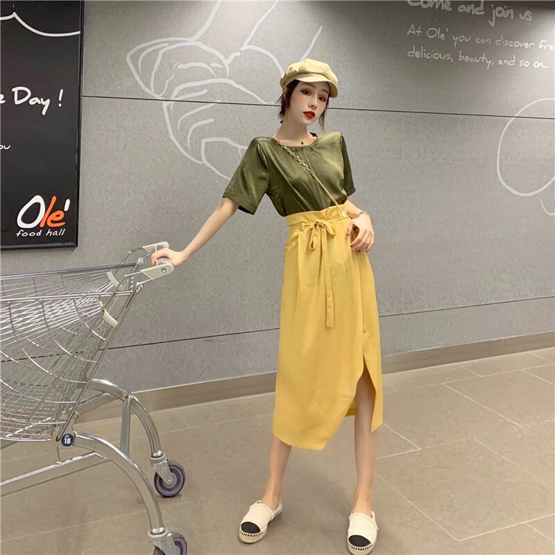 サテンソリッド カラーTシャツ スカート サマー 夏物 ソリッドカラー YY-ファッション10944429730