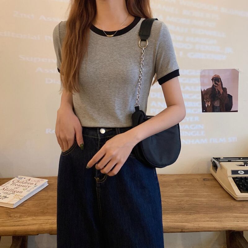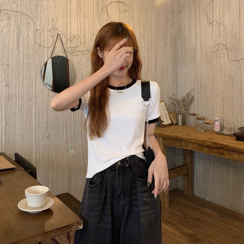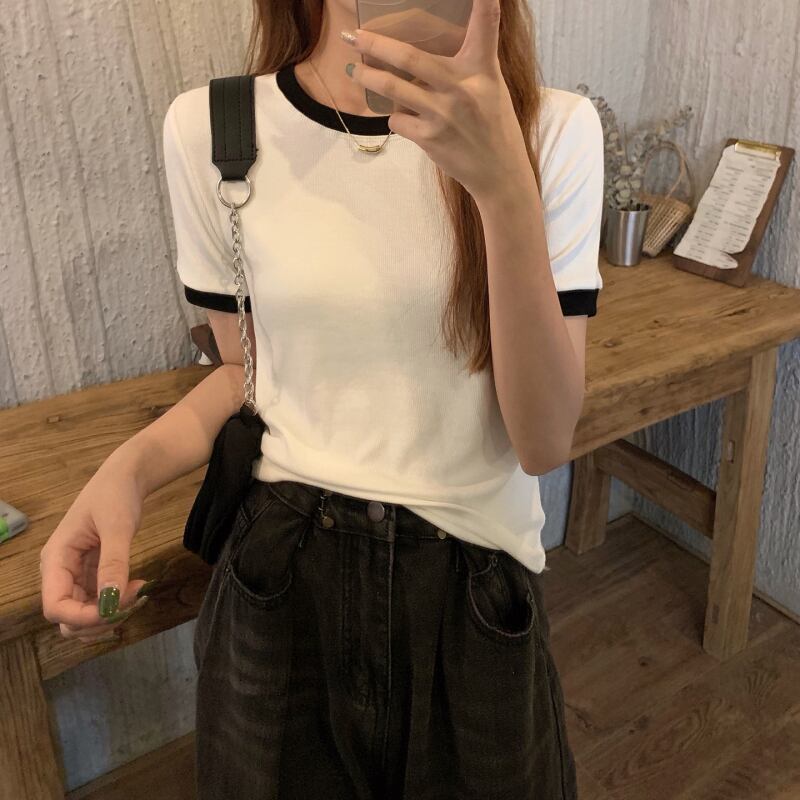 薄手サマートップス スタイルラウンドネックプルオーバー Tシャツ 夏物 Oネック ステッチ YY-ファッション1207645912