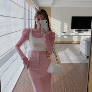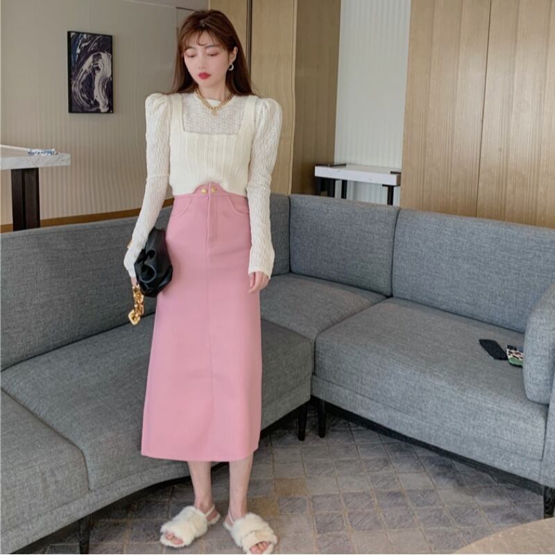 スカート オータムウィンターハイウェストウェスト薄手 ピンク 秋物 冬物 YY-ファッション78516011553
