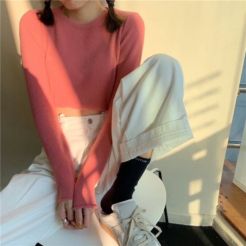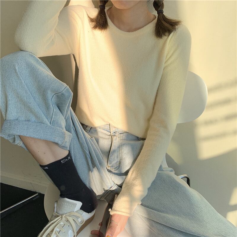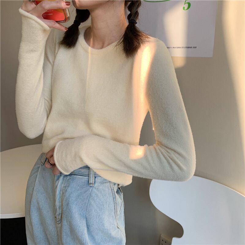 ウールベルベットシャツ レディースソリッド カラーラウンドネックセーター Oネック ピュア ソリッドカラー YY-ファッション52125540728