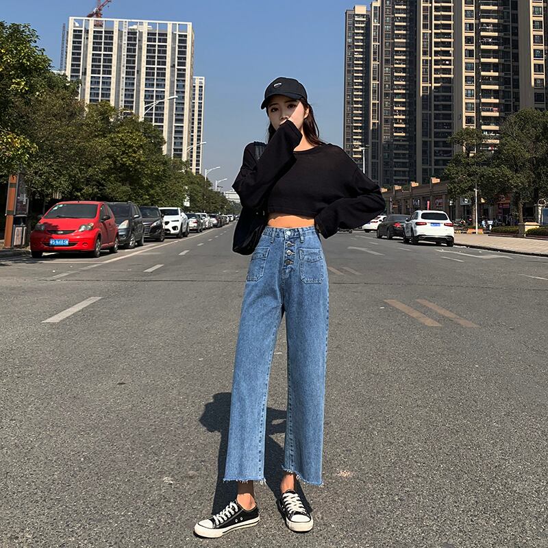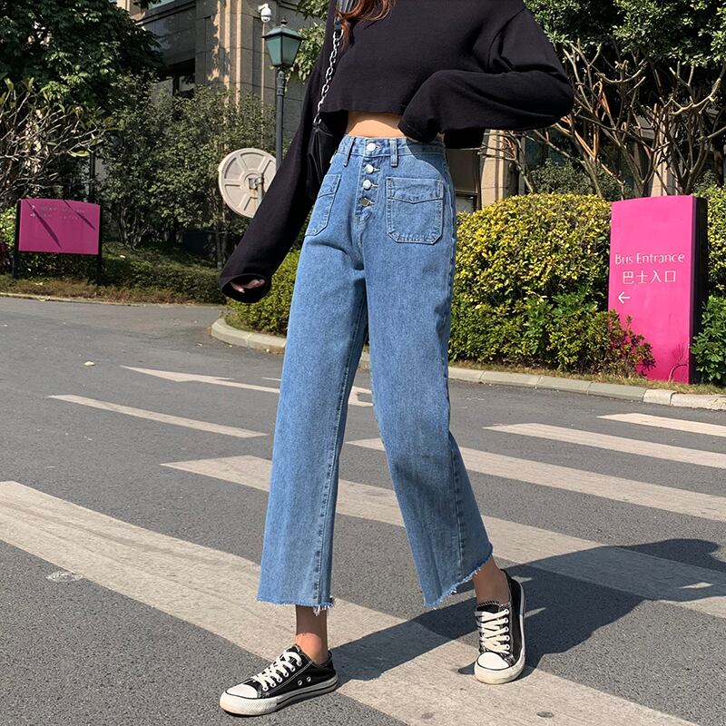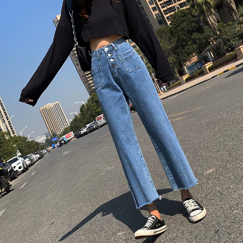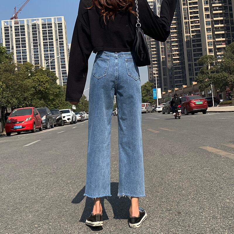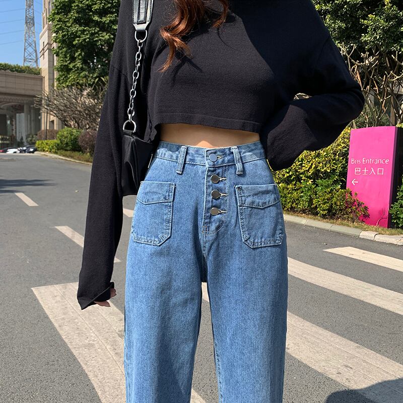 スプリングハイウェストウェストスリムブルージーンズ レディースルーズクロップド 春物 YY-ファッション60243244639