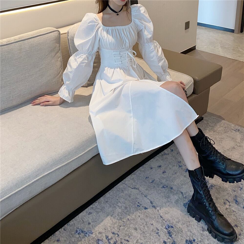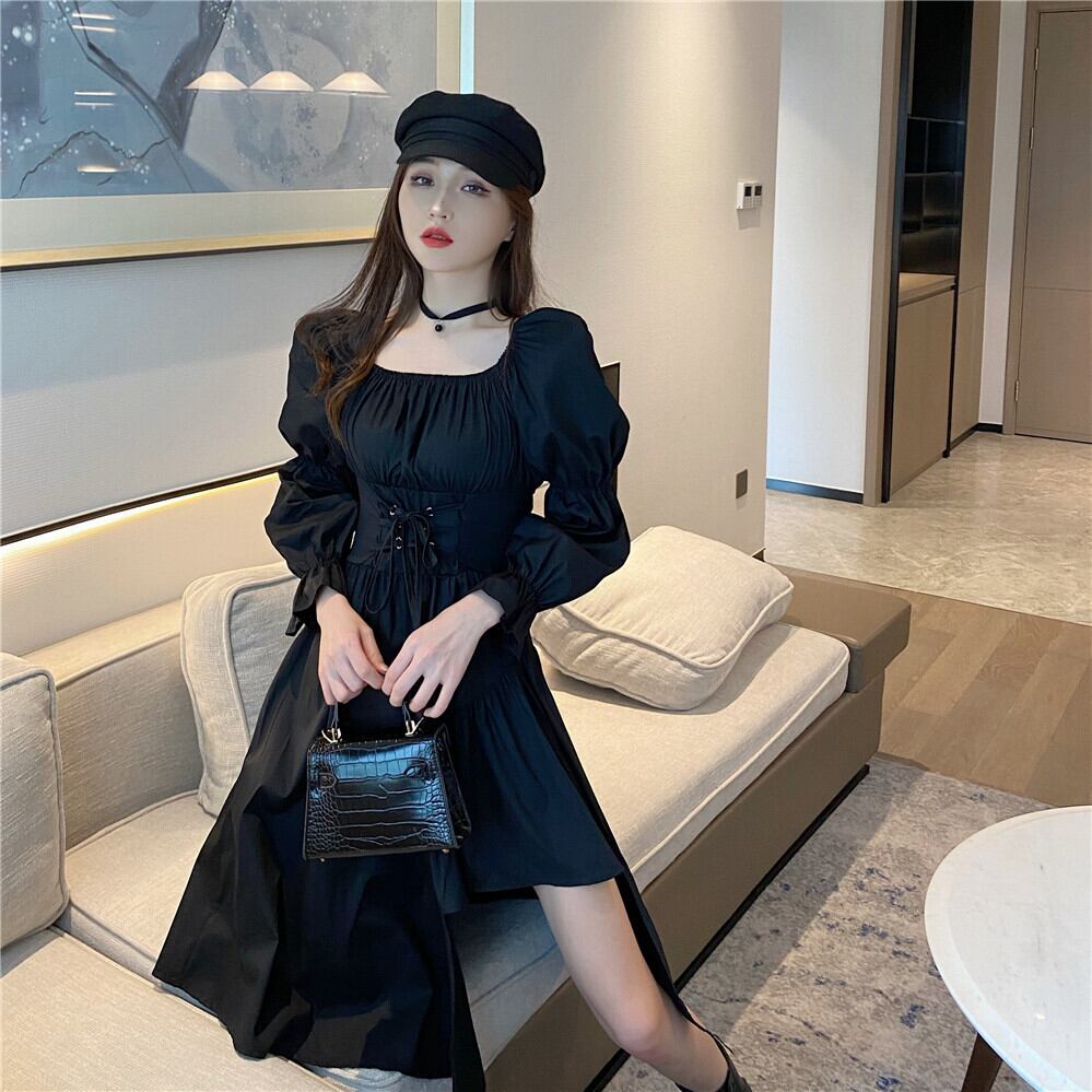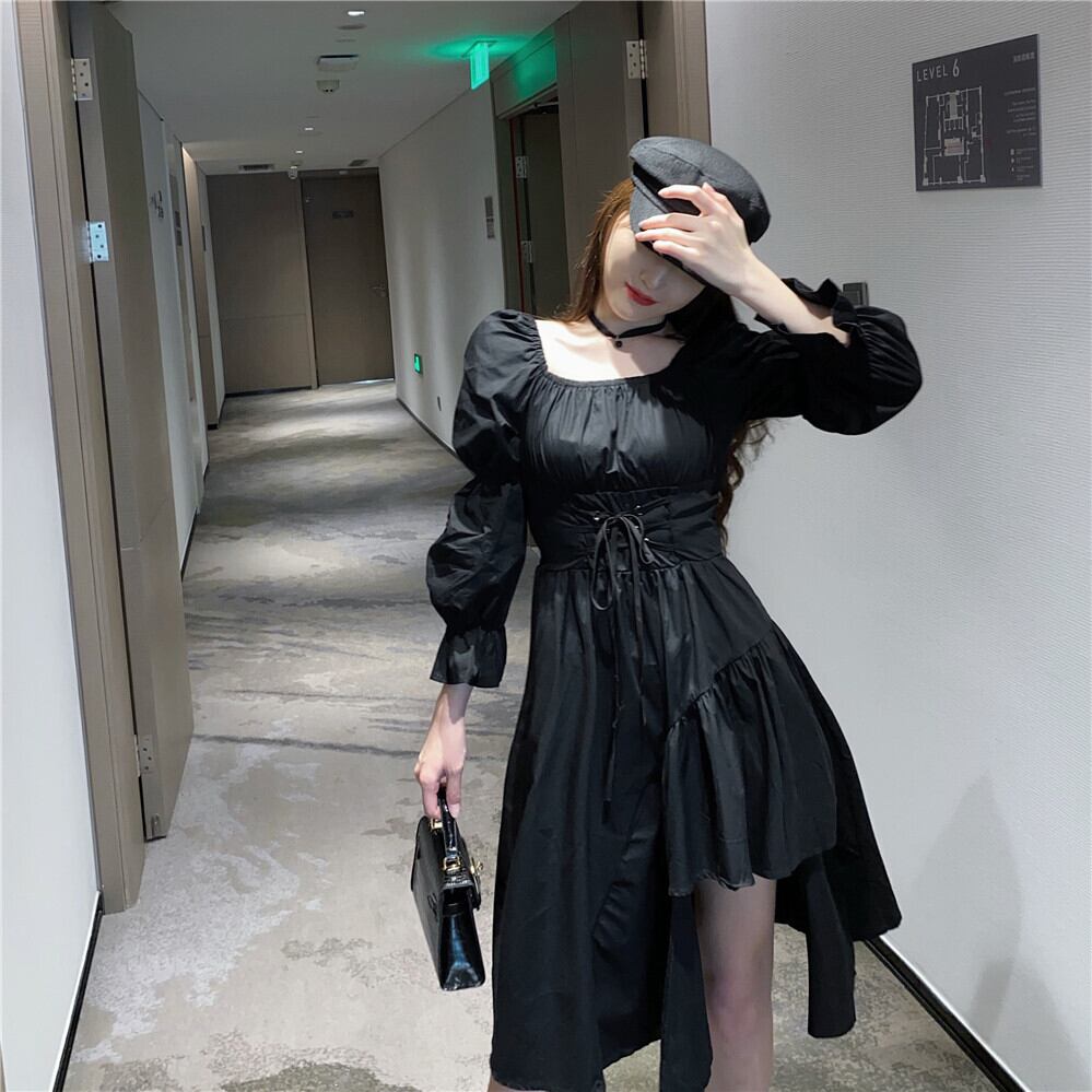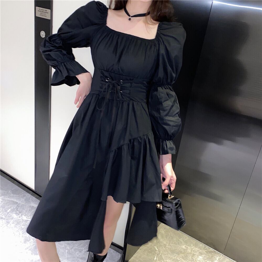 スリーブドレス スプリングスタイルウェストロングスカート 春物 スクウェア YY-ファッション65759866721