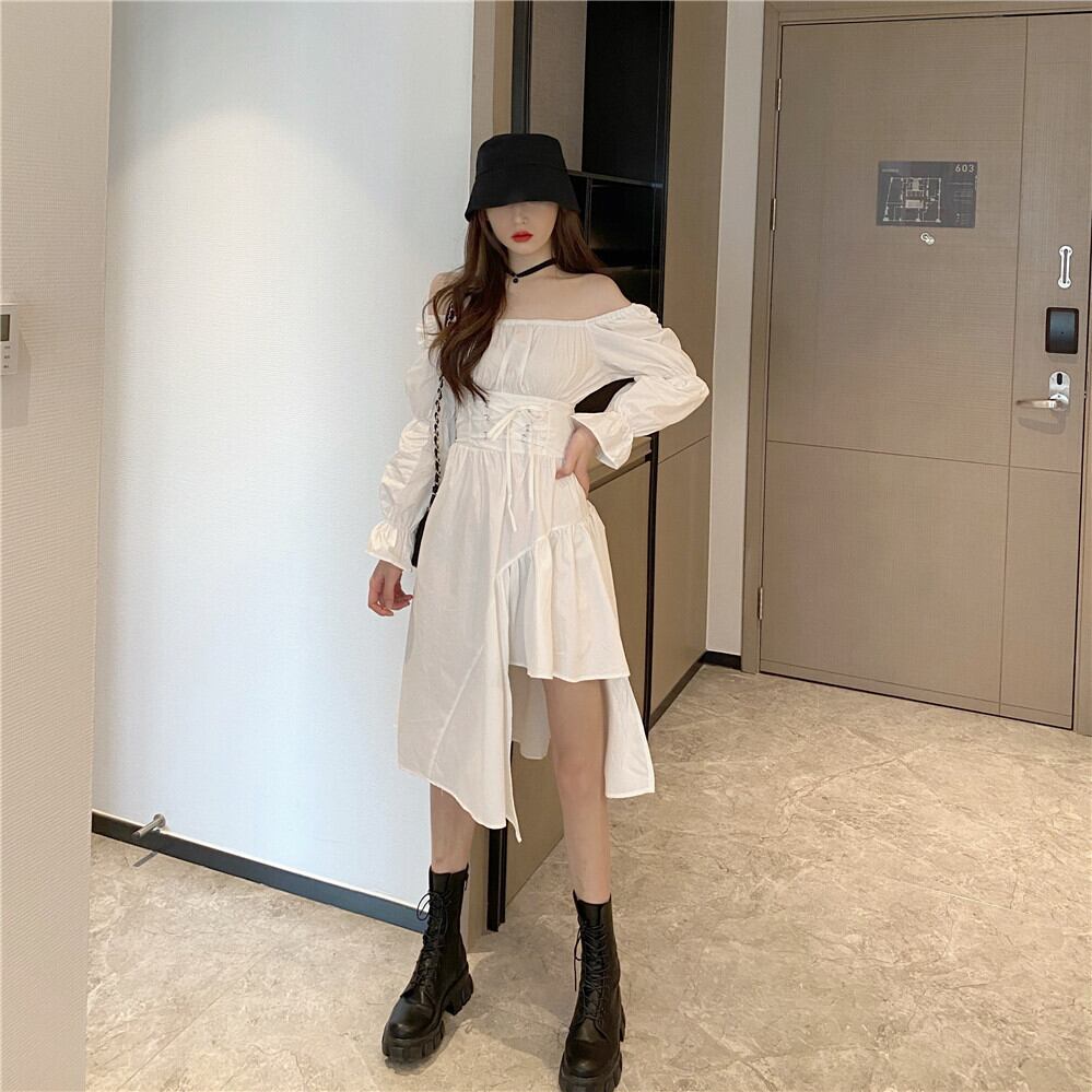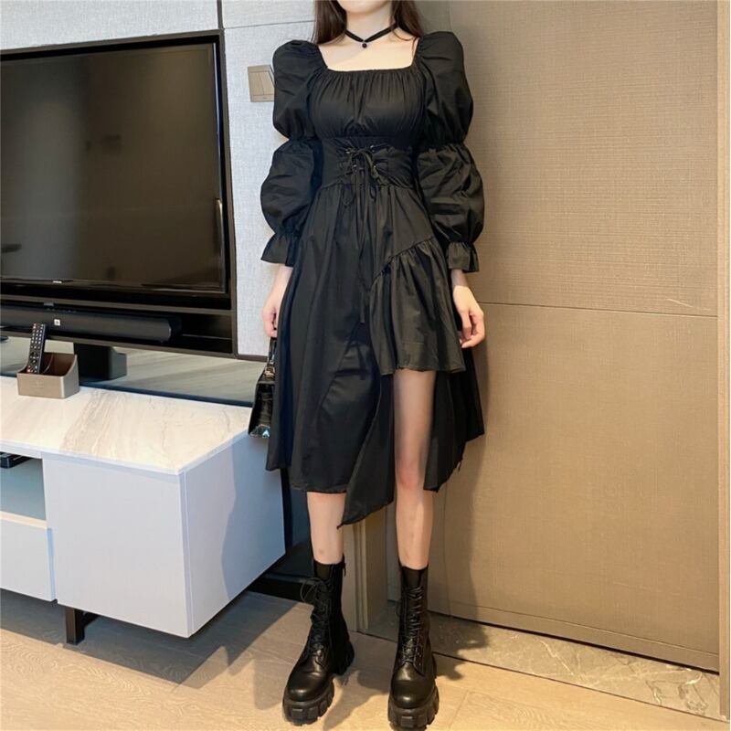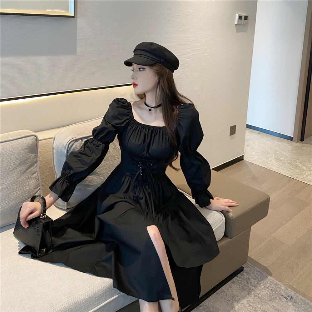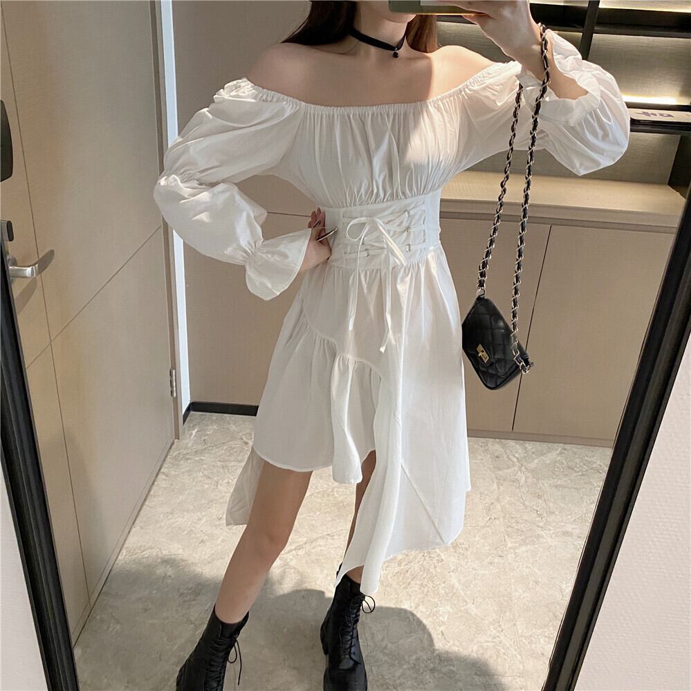 スリーブドレス スプリングスタイルウェストロングスカート 春物 スクウェア YY-ファッション65759866721