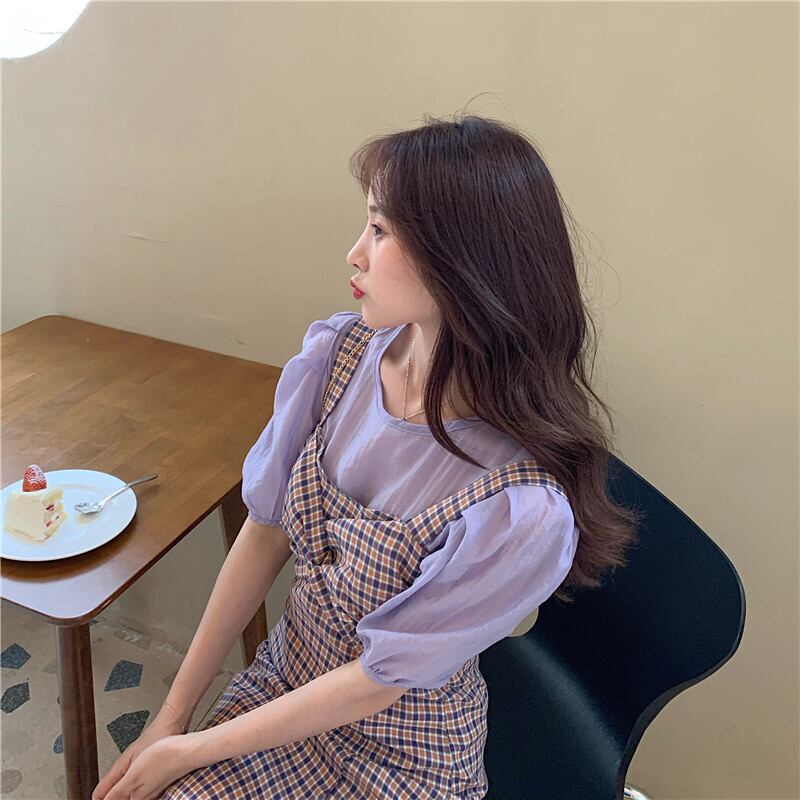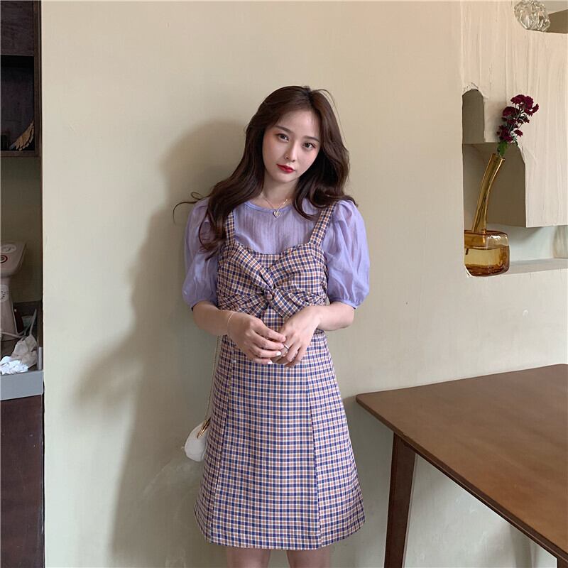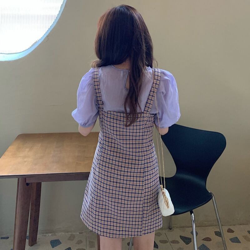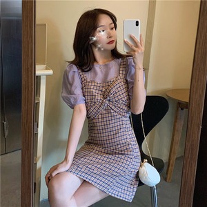 サマースリーブ格子柄ドレス 大人ガーリー スウィート キュート カジュアル 夏物 YY-ファッション9313449290