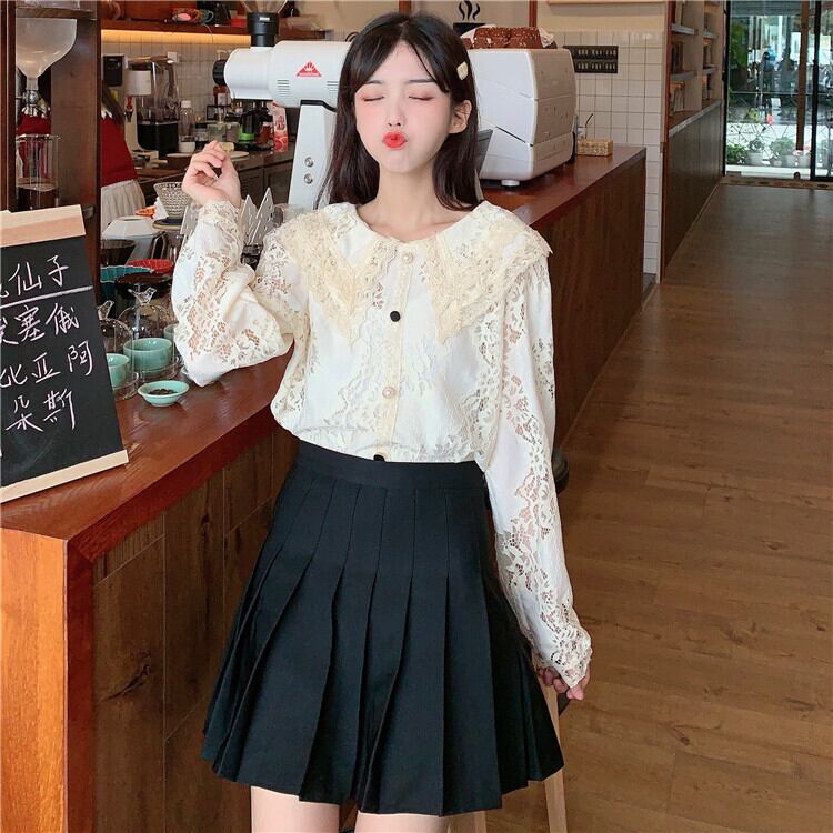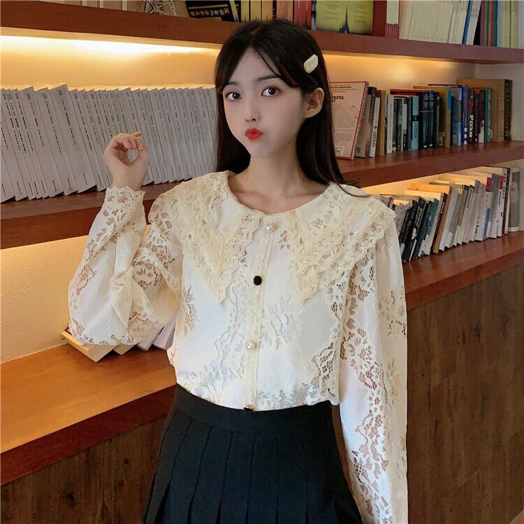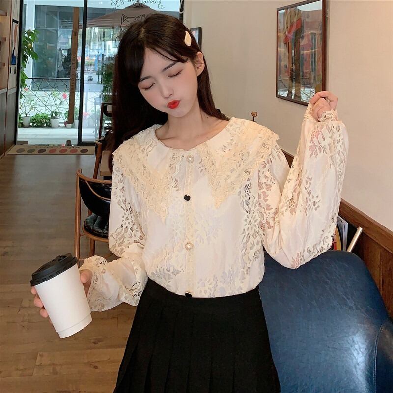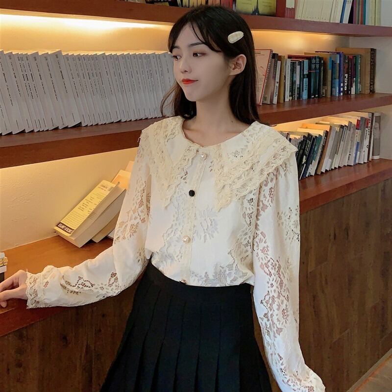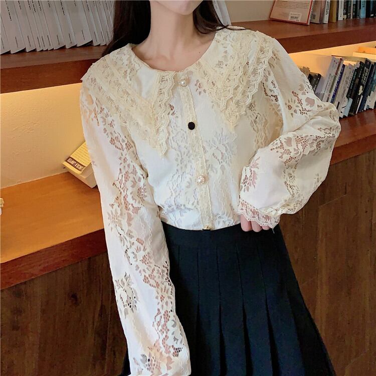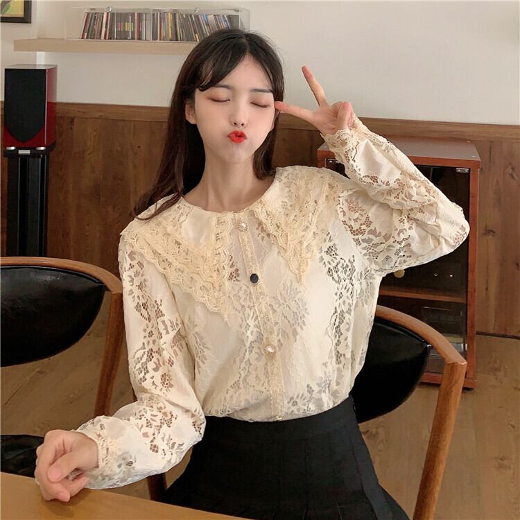 スプリングオータムスタンダードチェーン Flowerデザイン カラールーズレースシャツ レディース ロング レトロ 春物 秋物 フラワーデザイン YY-ファッション39133992170