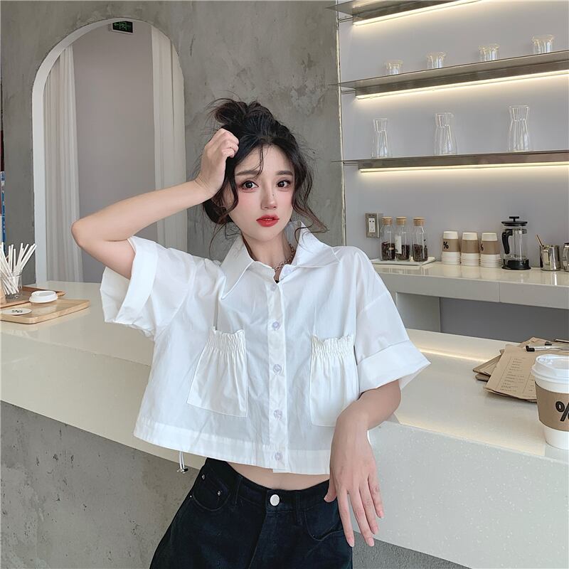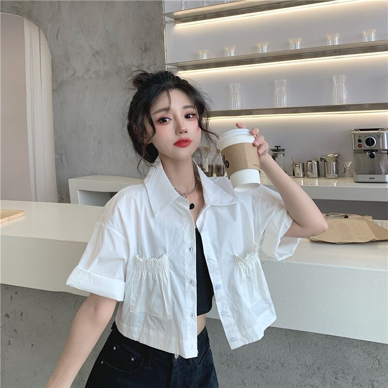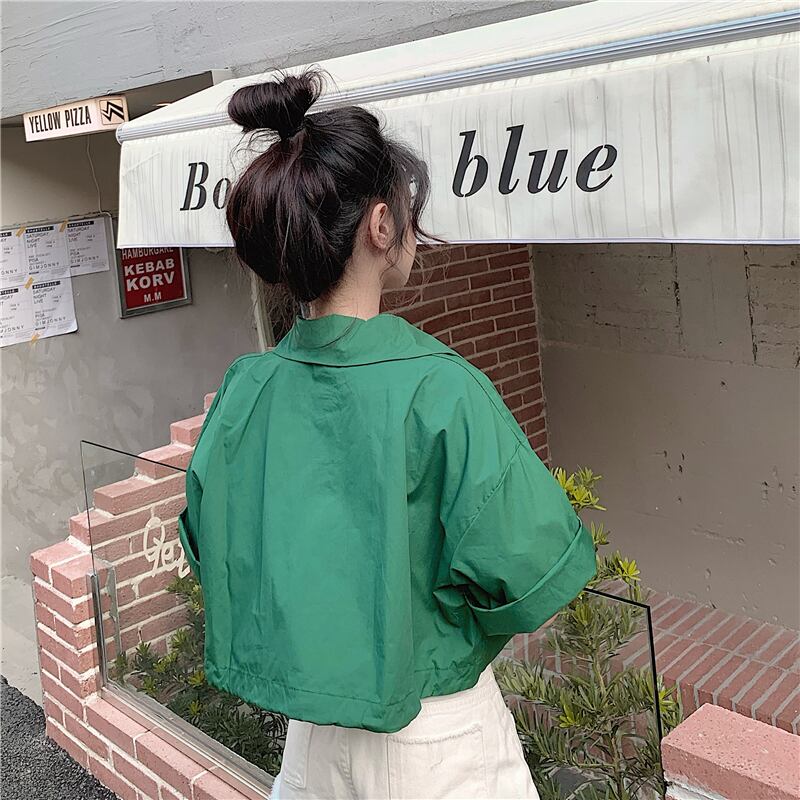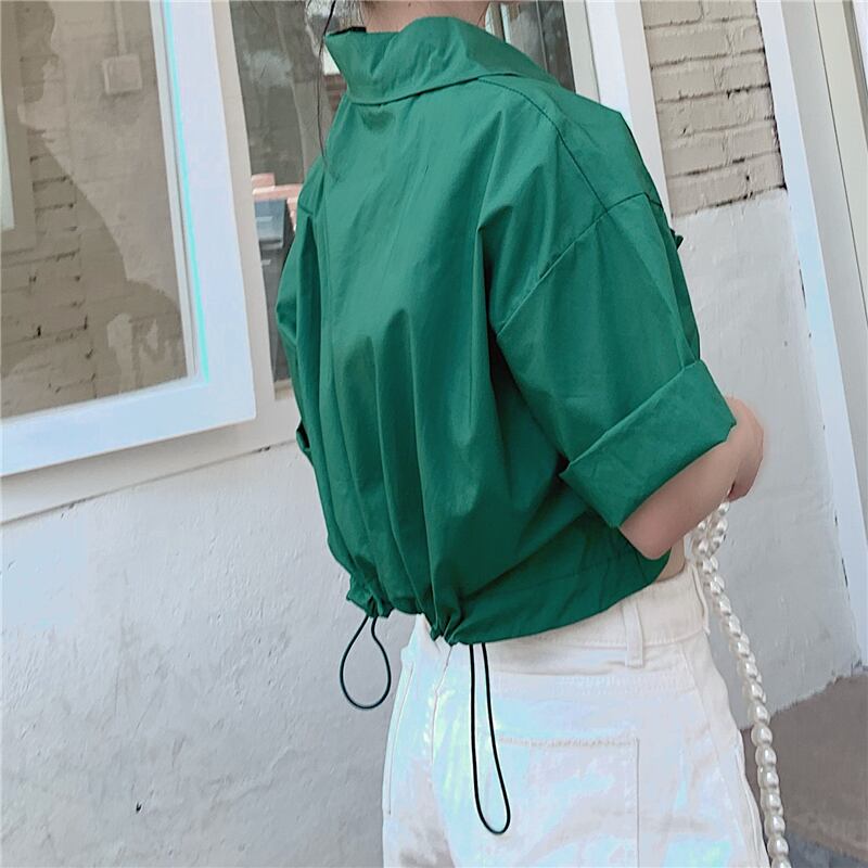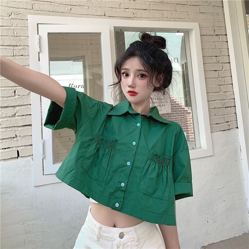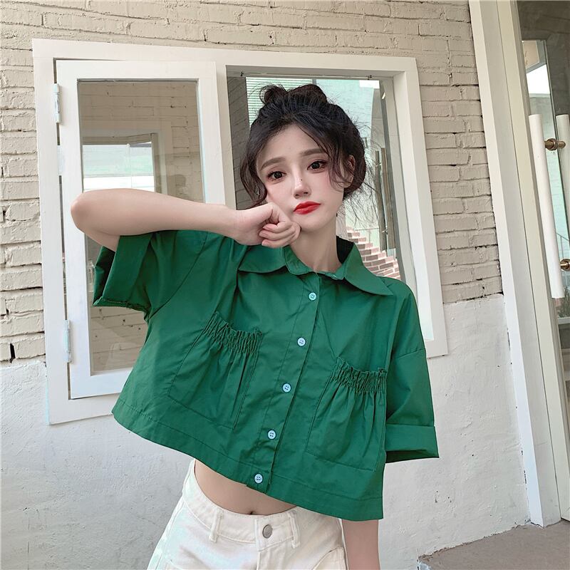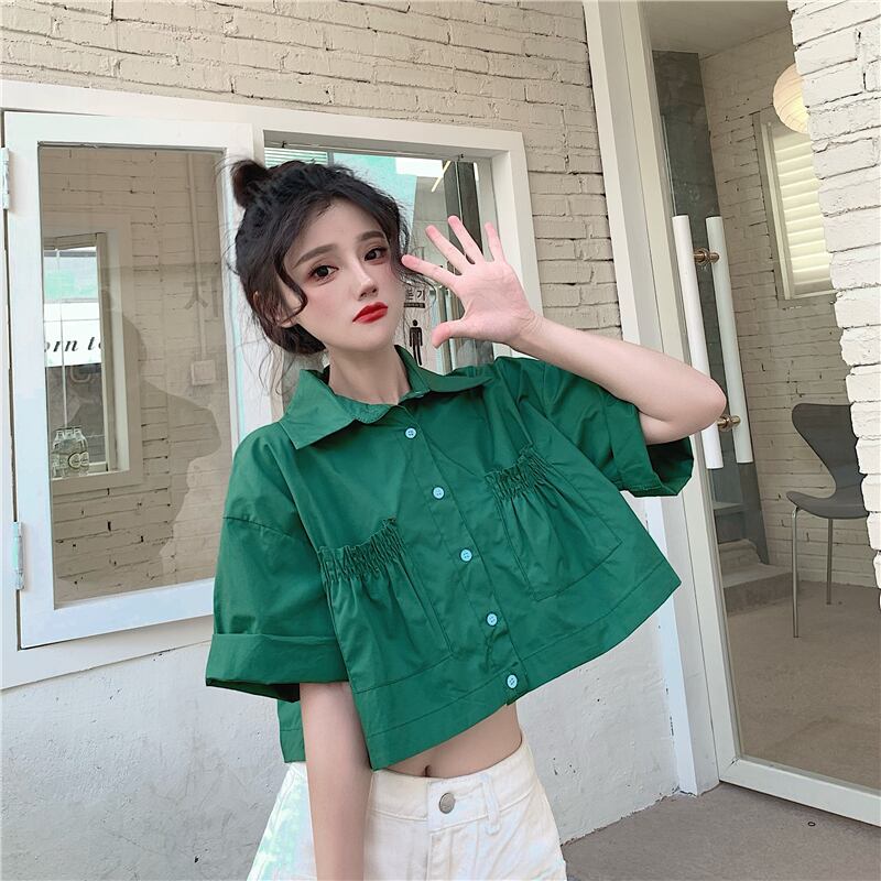 サマーハイウェストウェストクロップトップ トップス グリーンシャツ 夏物 YY-ファッション49535941555