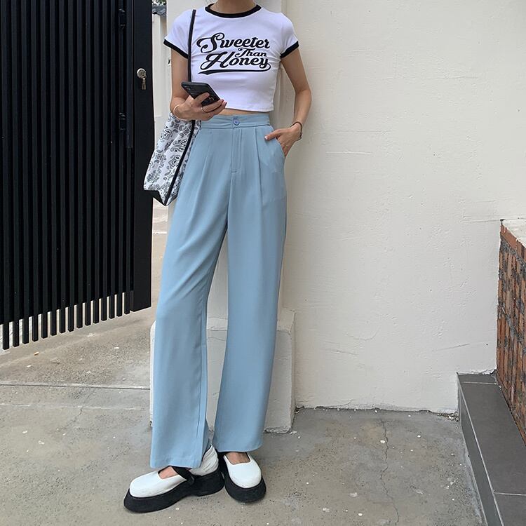 パンツ サマー薄手ハイウェストウェストスタンダードカジュアル レトロ 夏物 YY-ファッション12793002325