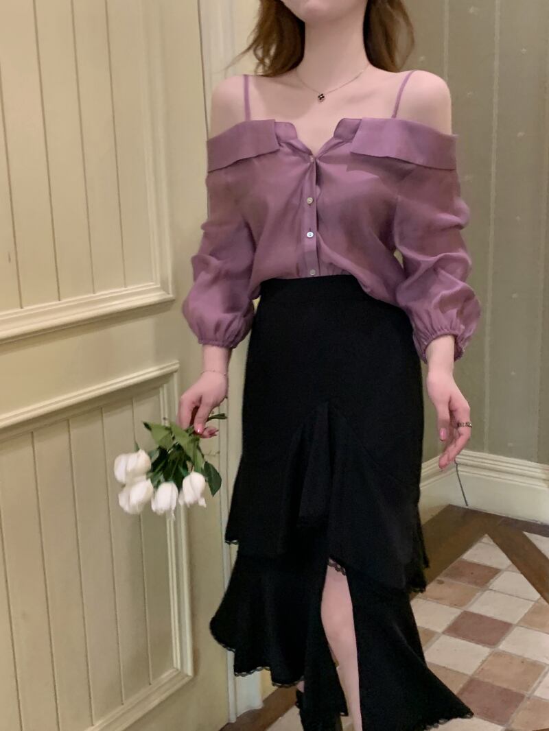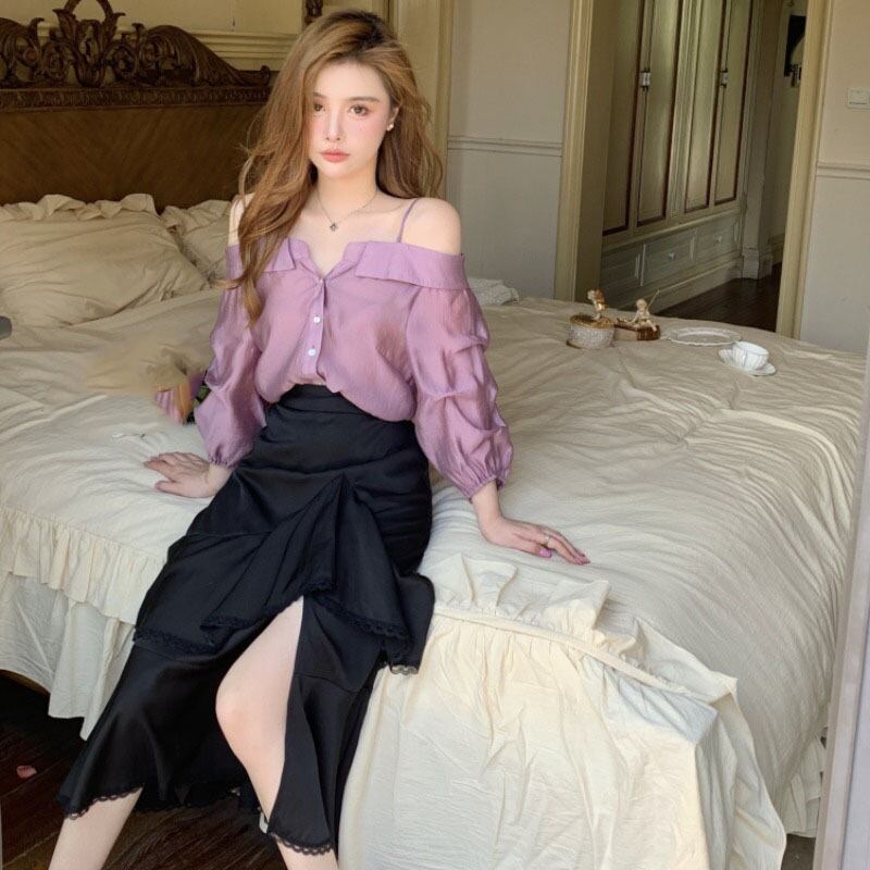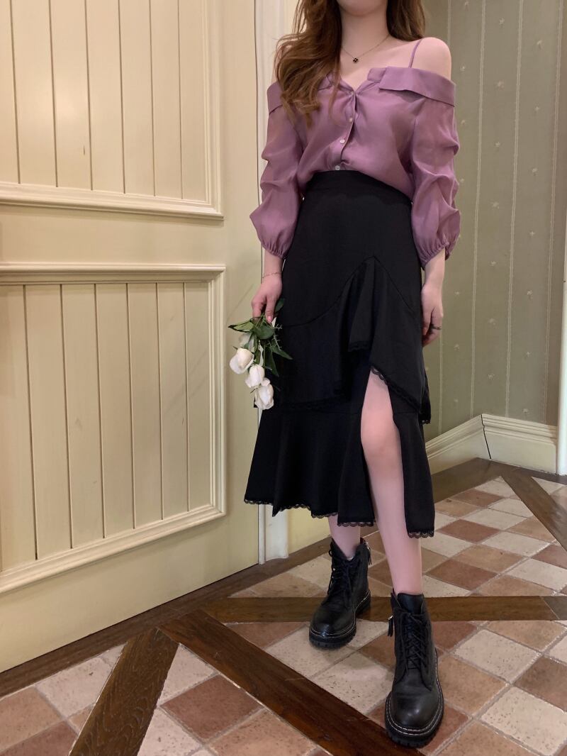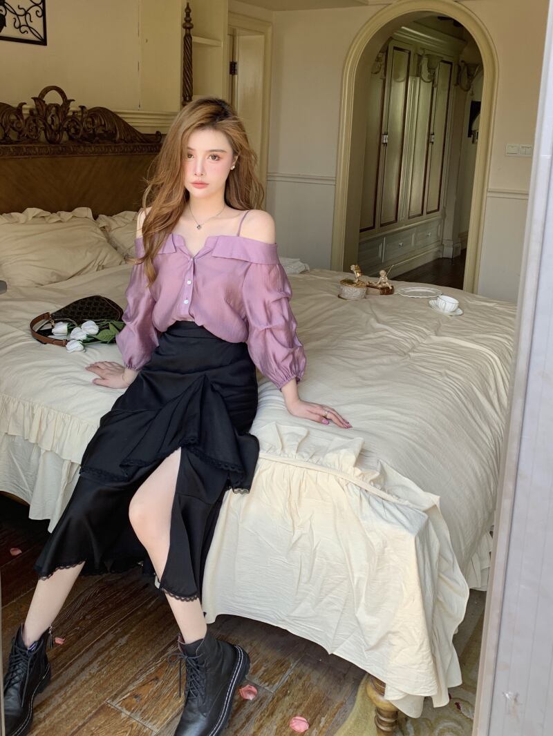 サマースタイルストラップレスシャツ スリットレーススカート レディース 夏物 YY-ファッション79044747297