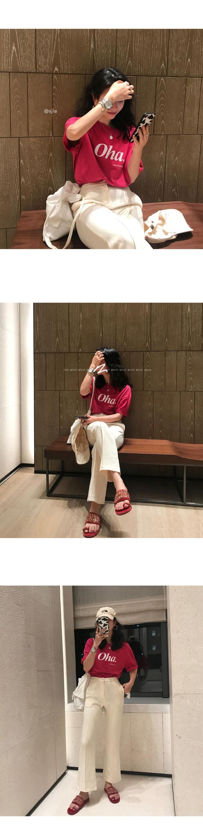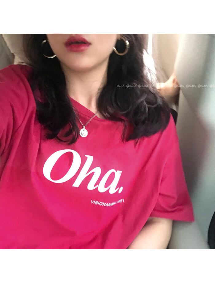 Tシャツ サマープラムレッドホワイトトップス コットン 夏物 YY-ファッション51821810991