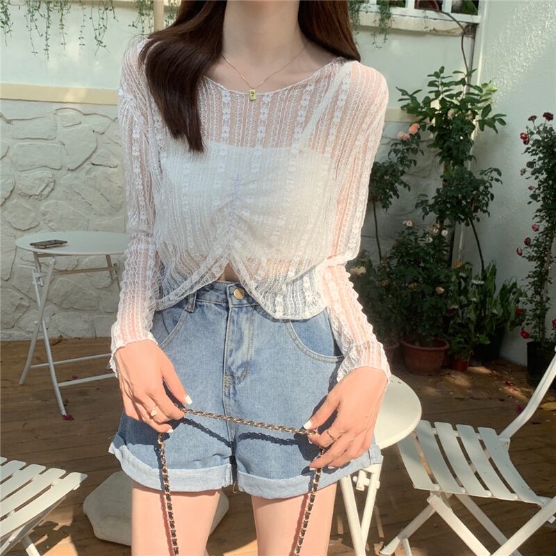 シフォンシャツ サマースタイルギャザールーズレーストップス ロング 夏物 YY-ファッション20031789157