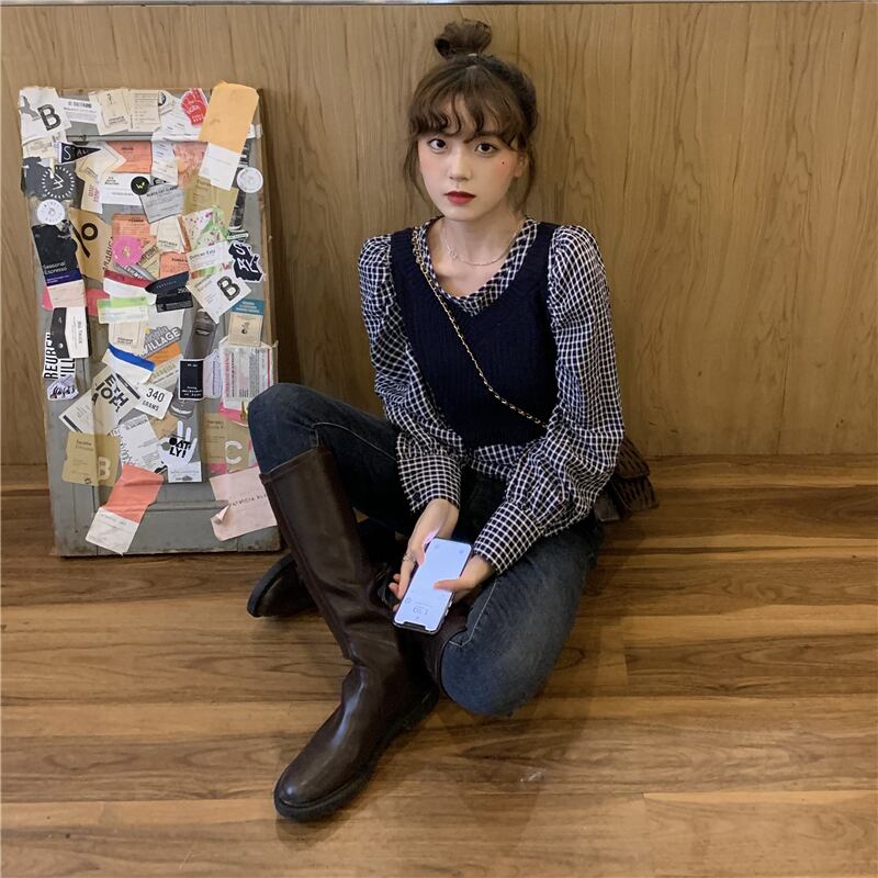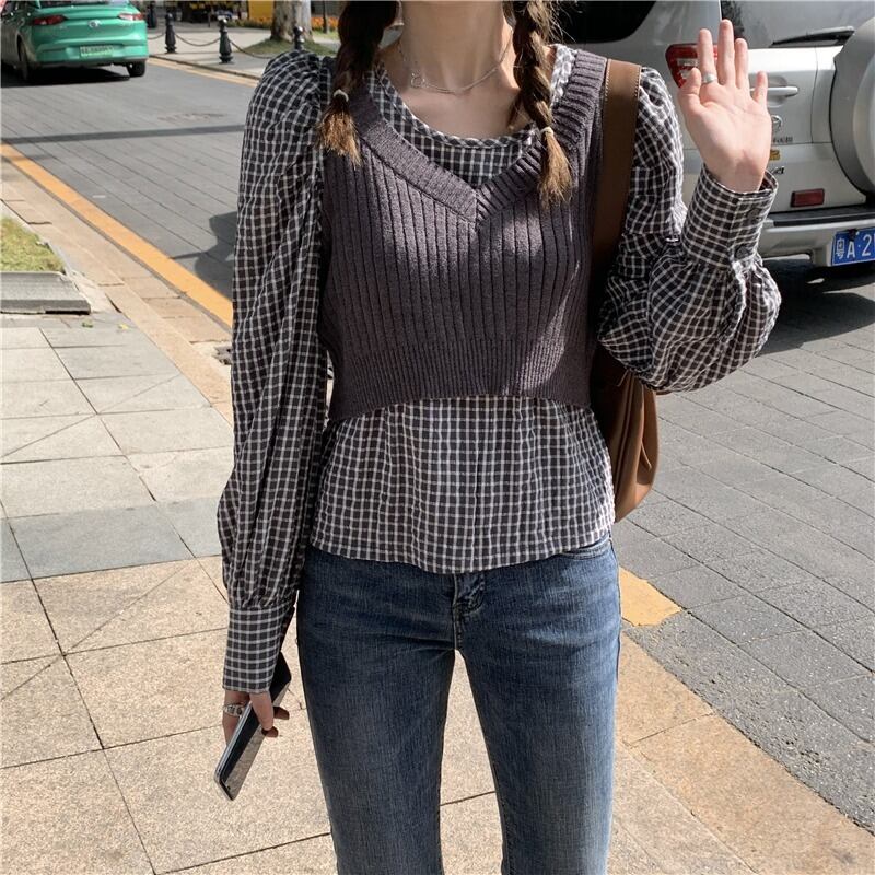 格子柄シャツ レディーススプリングスタイルルーズスリーブ ロング 春物 YY-ファッション82787462677