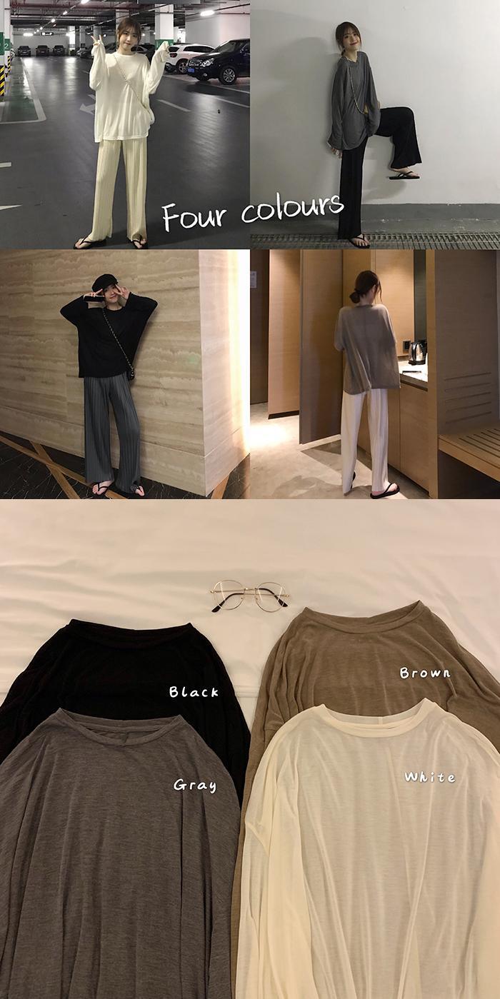 色:ブラックトップ,グレートップ,ホワイトトップ,ブラウントップ,アプリコットワイドレッグパンツ,グレーのワイドレッグパンツ,黒のワイドレッグパンツ