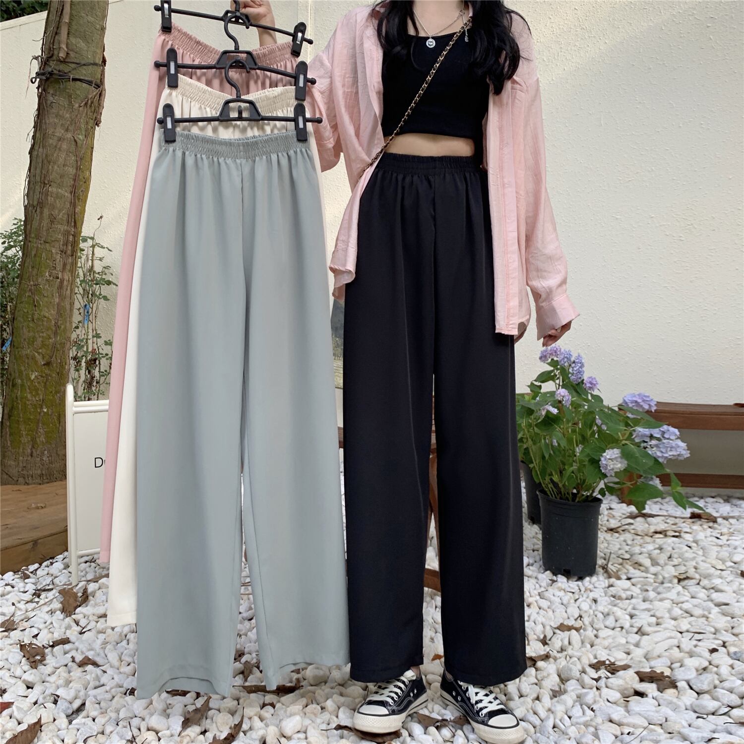 ストレッチウェストサマーハイウェストブラックカジュアルパンツ レディース エラスティック 伸縮 夏物 YY-ファッション87835115228