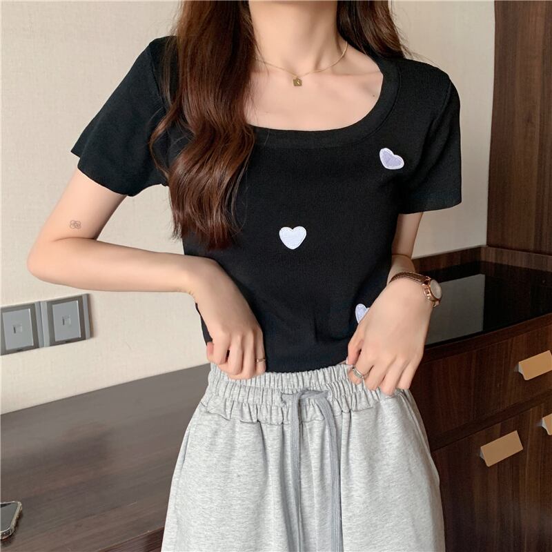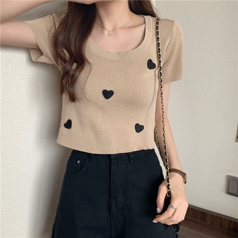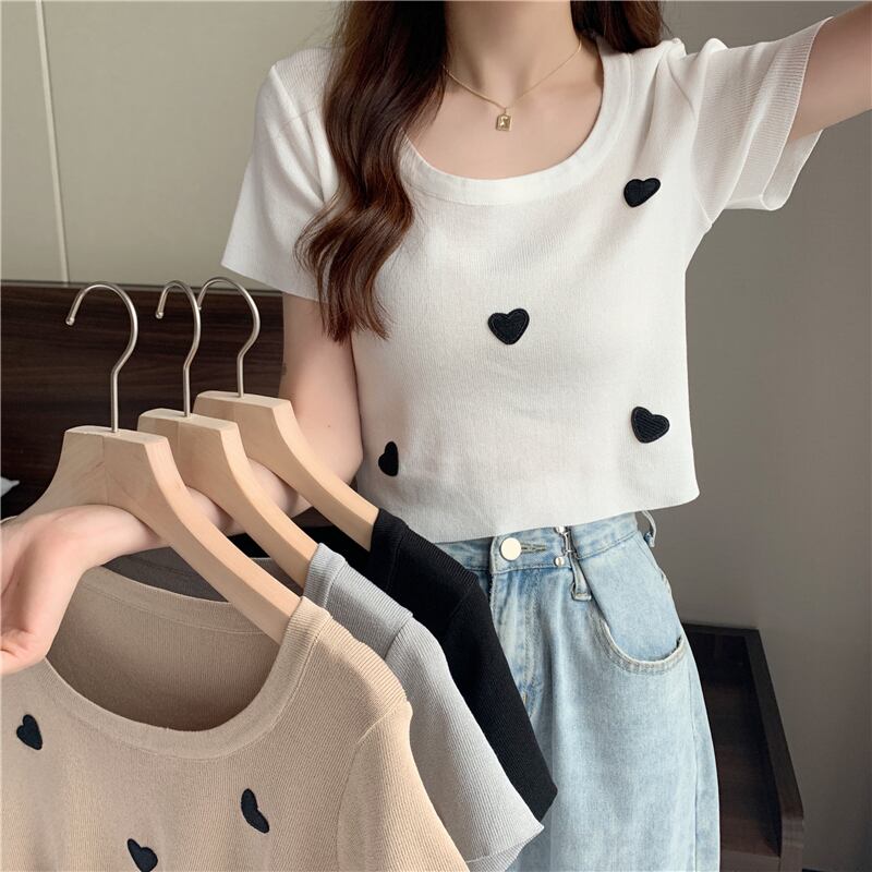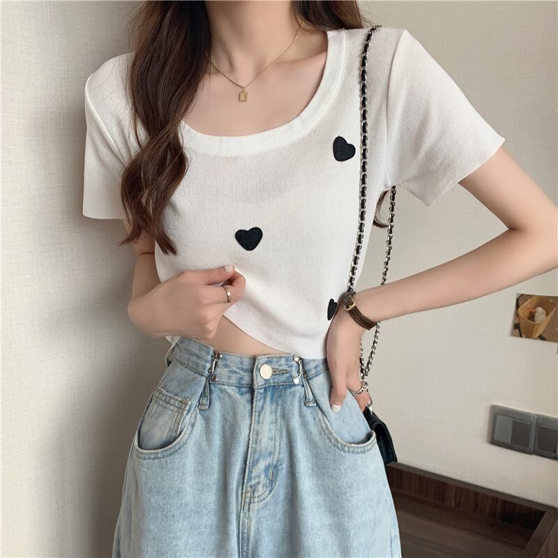 スタイルトップス Tシャツ サマーレッド薄手ニットホワイト 夏物 シルク YY-ファッション14732881219